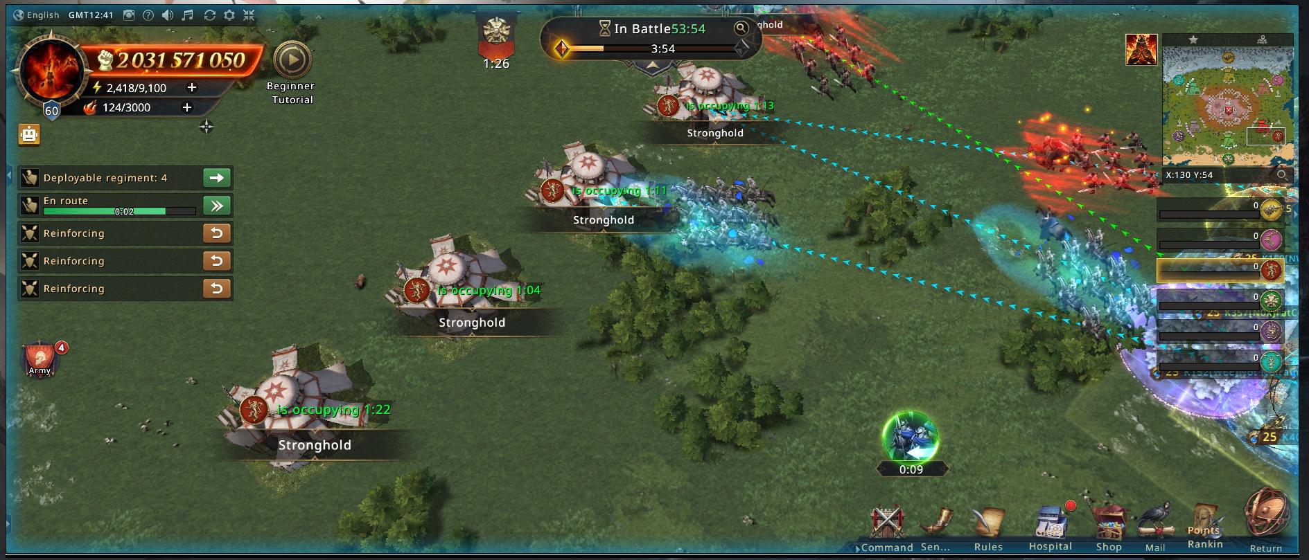 Later I get another visit, but with my reinforcements arriving as well, I can safely drain the remaining points from this second mine, just in time for my absence to be noticed from the City of Glory. So I quickly recall, heal up, and go back to the middle of the map, where all my friends and their troops are having fun.
