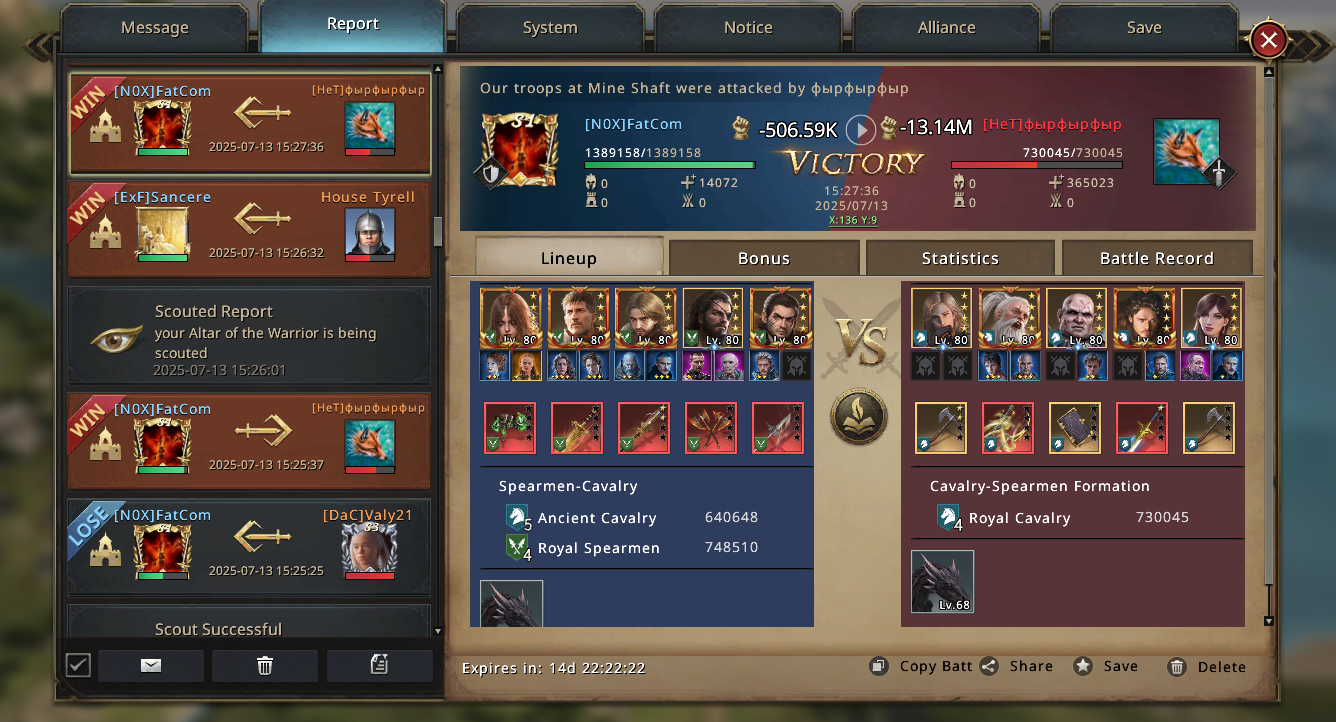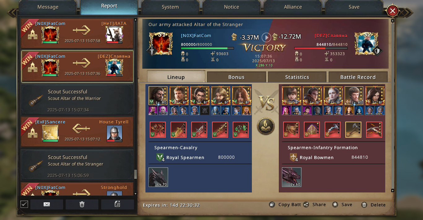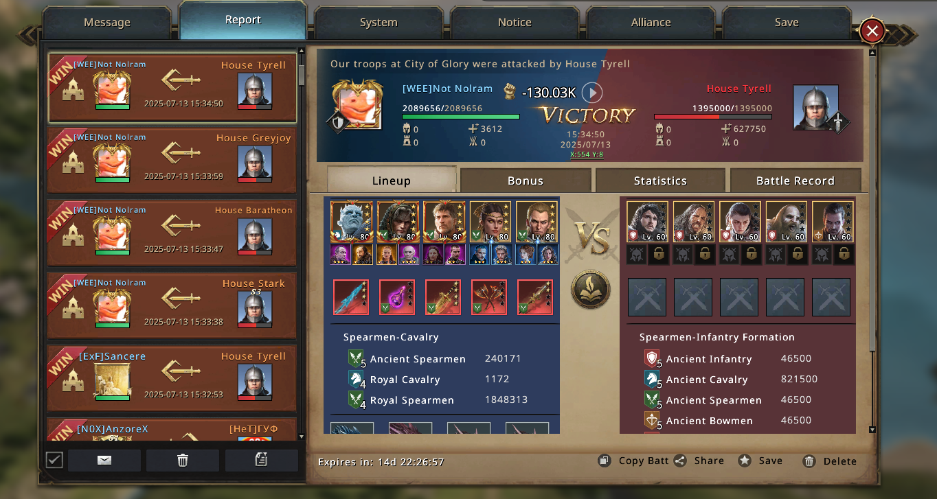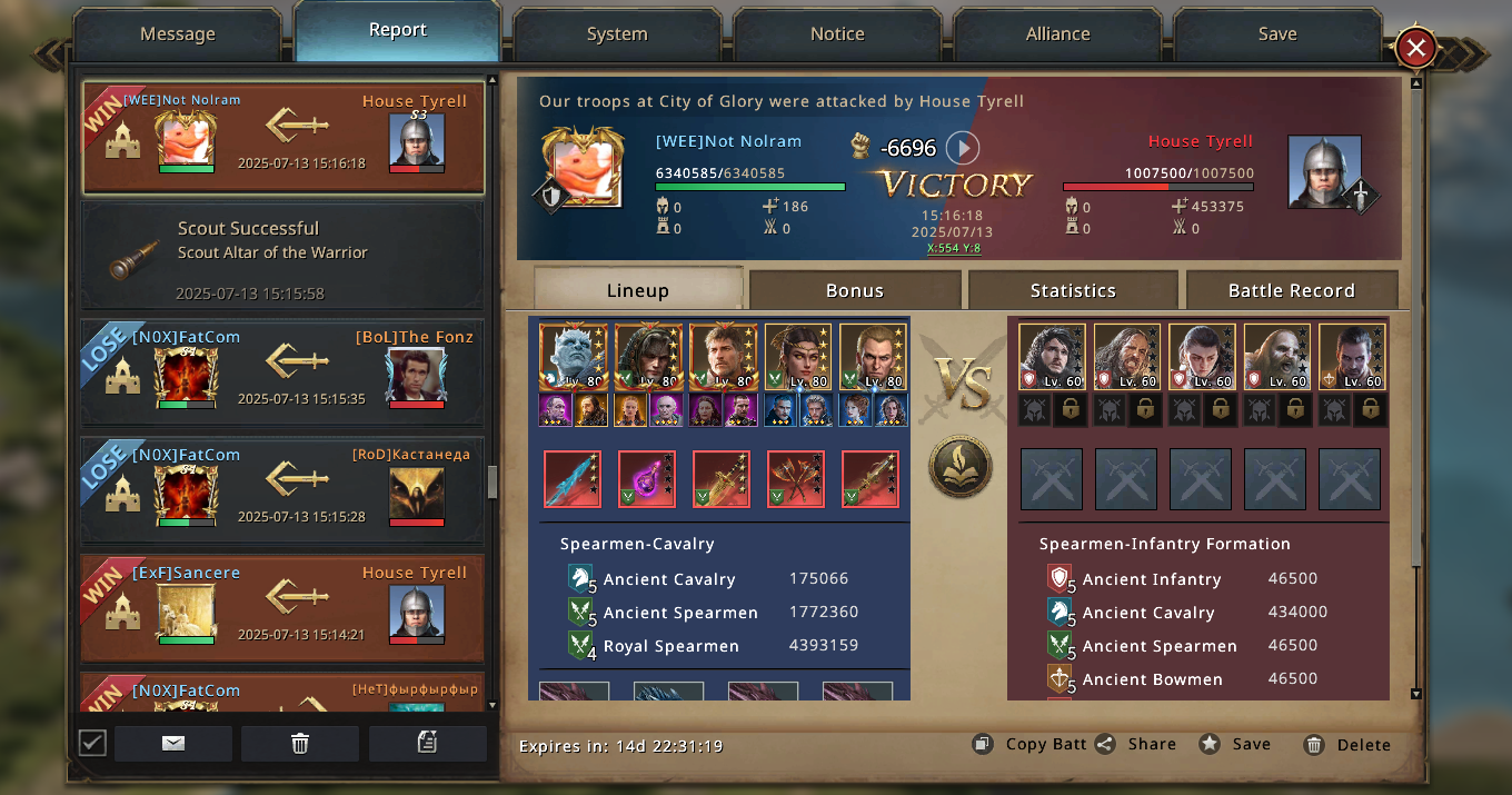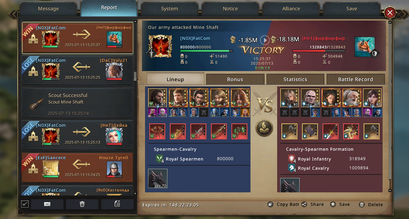 Funny how they felt insulted and decided to come back… only to feed me even more elimination points. Their Cavs vs my Spears? Their stats vs my stats? 13 million power dead vs my 0.5 mil? Yup, that pretty much sums it up.😅