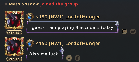 It’s a bit late and not a lot of our people are in. At least they added this new feature where we can pilot AFK accounts, so it’s all good. We're already playing mains and alts, might as well play extra accounts on top. ^^