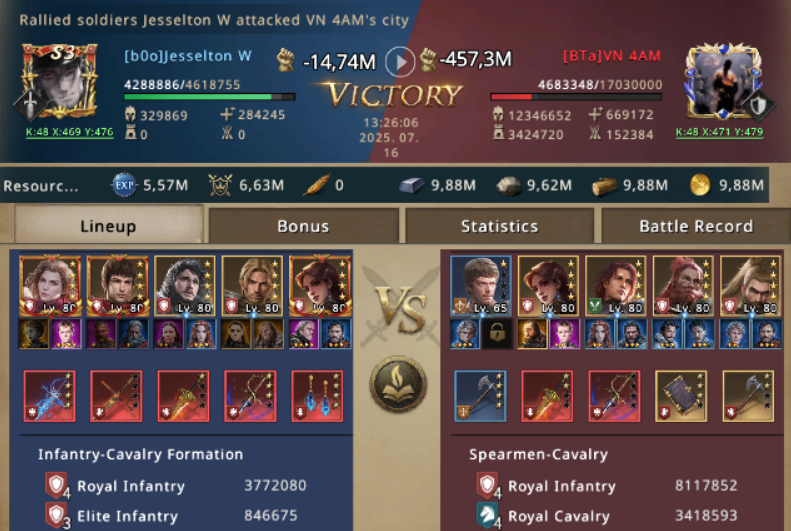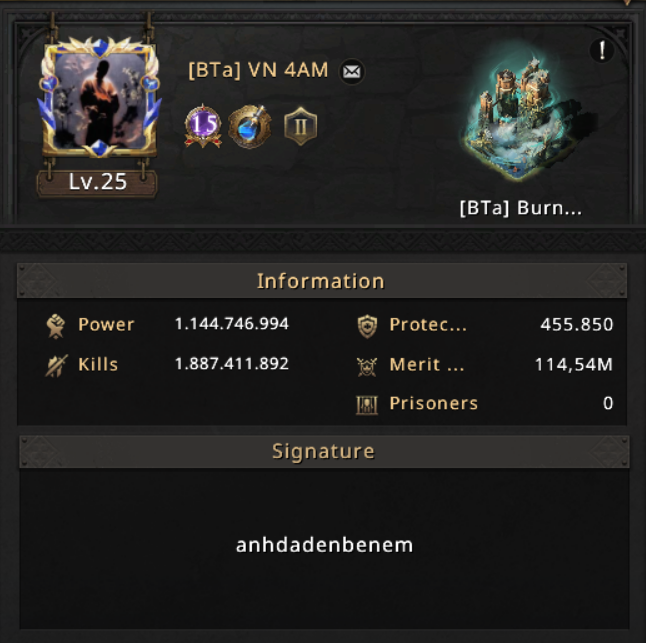 The great Jesselton was searching for a fresh target through many kingdoms and finally spotted a jackpot. In the big kingdom 48, the home of 1HR and BTa alliance along with the famous BTa member that is known as CrimsoNDawn, he spotted a big target with 1.5 billion power by the name VN 4AM. A member of the big BTa alliance, known for great performances in events such as alliance conquest and others. Jesselton noticed that the player was online, but we all know this won't stop him from ruining BTa member's day. He simply texted his partner P4RTY: "Are you up for a hunt?". P4RTY responded immediately with a short: "Let's go!".
