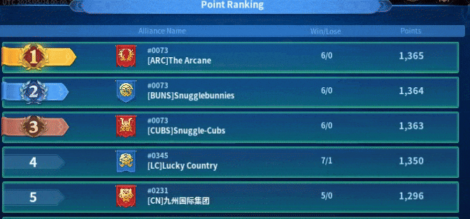 - Server 73’s ARC leapt into first and overtook both of their sister teams after BUNS and CUBS skipped the week to focus on KvK. They are currently 6-0.