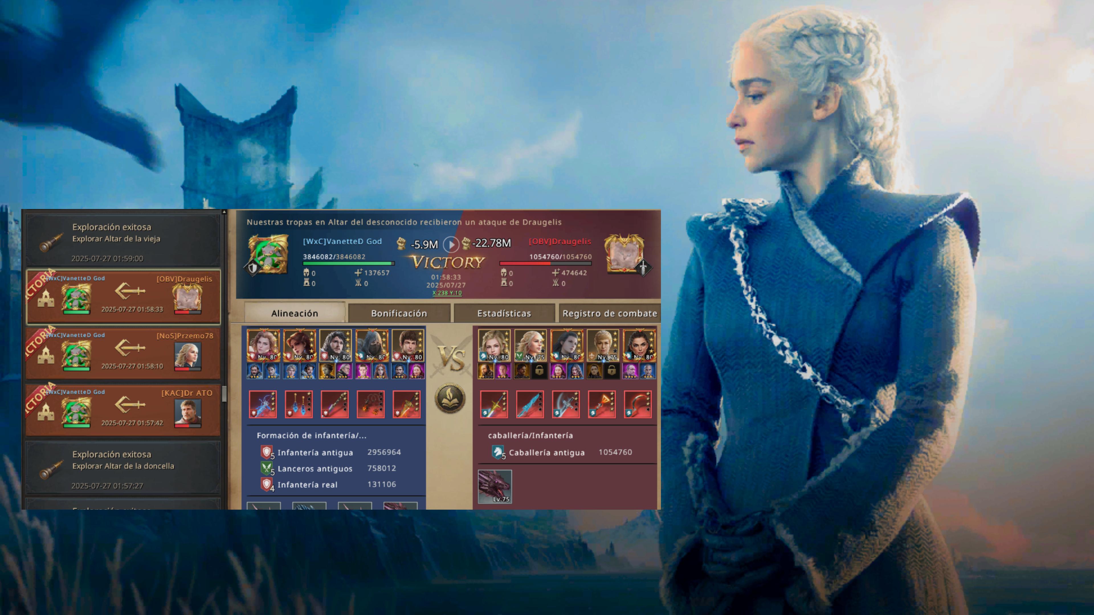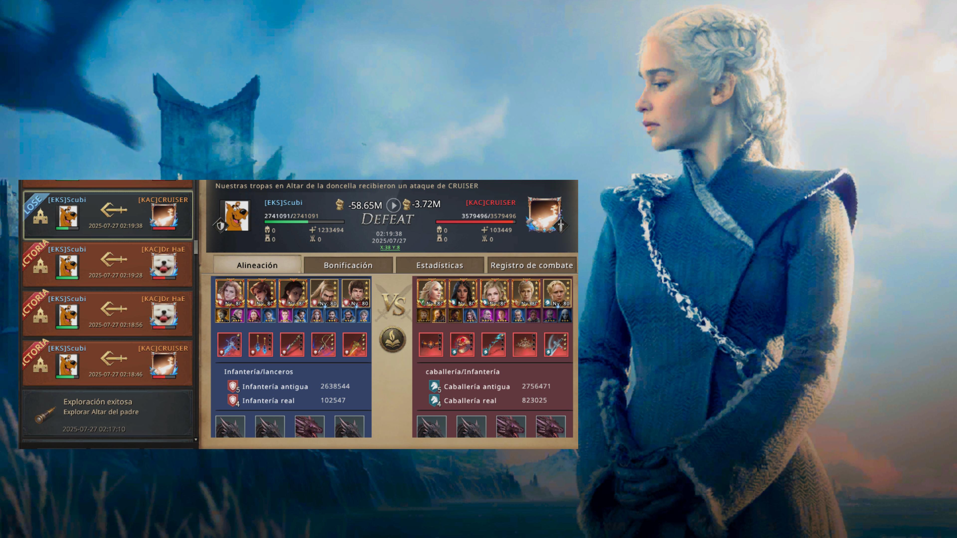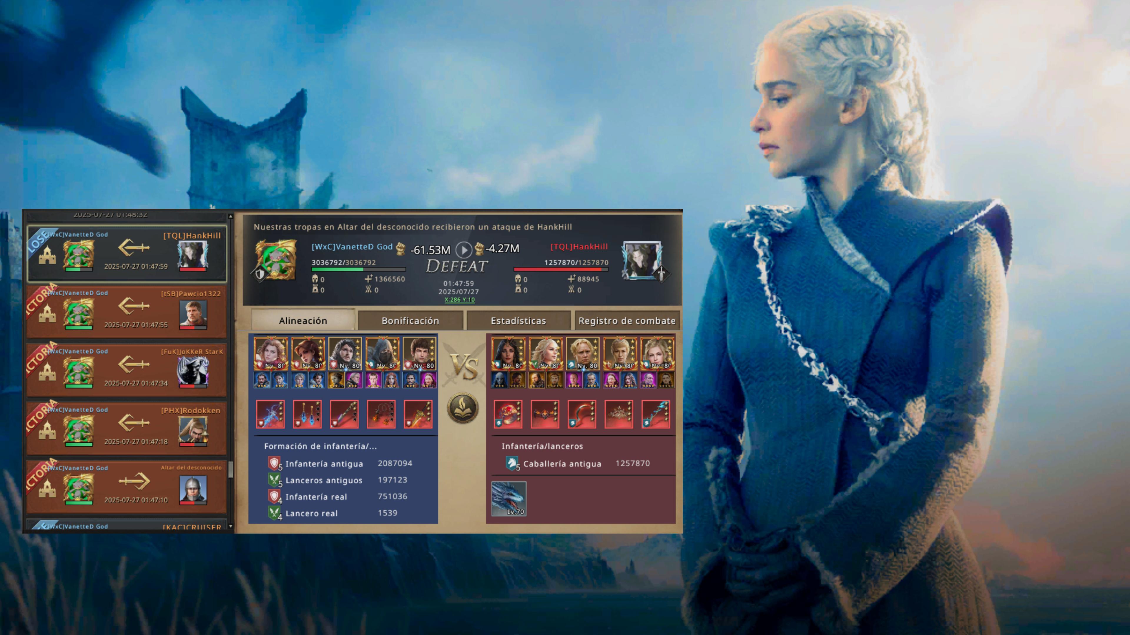 It wasn't 1, 2, or 3 attacks, it was 5, where I had defeated 4 members of HankHill's faction, until they sent information telling him that I was infantry, and he, being my counter, decides to go without thinking, with the new commander Brienne, he tests his damage against me, annihilating me... with no chance to come back, he wins the first round of altars...
