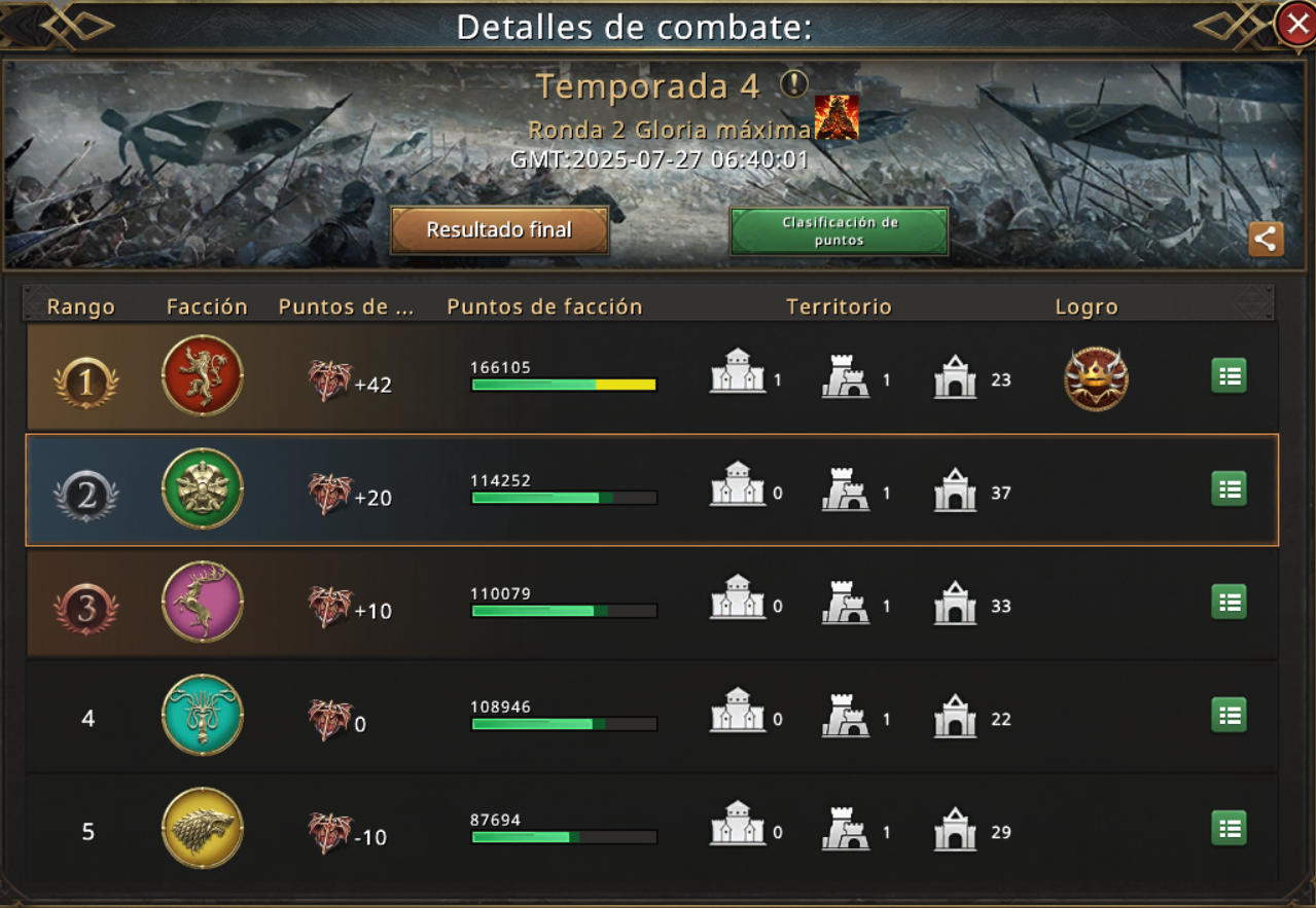 And although we didn't conquer the top of the leaderboard, we remained in an honorable position, above many who underestimated us. Not because of strength, but because we knew our limits, our strengths, and—above all—how to move as one. Each of us understood our role, and the troop distribution was impeccable: there was never any disarray, never a lance out of place. Victory lay not only in numbers, but in the way we had endured, built, and overcome every obstacle without betraying our essence.