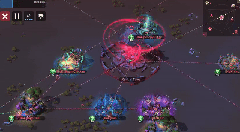 1K sent one player to the Central Tower, and HoK sent three. Both teams should have given up control of the middle in the early minutes. With so few players in the game from both sides, either can wrestle control of the center if needed in the mid and end-game.