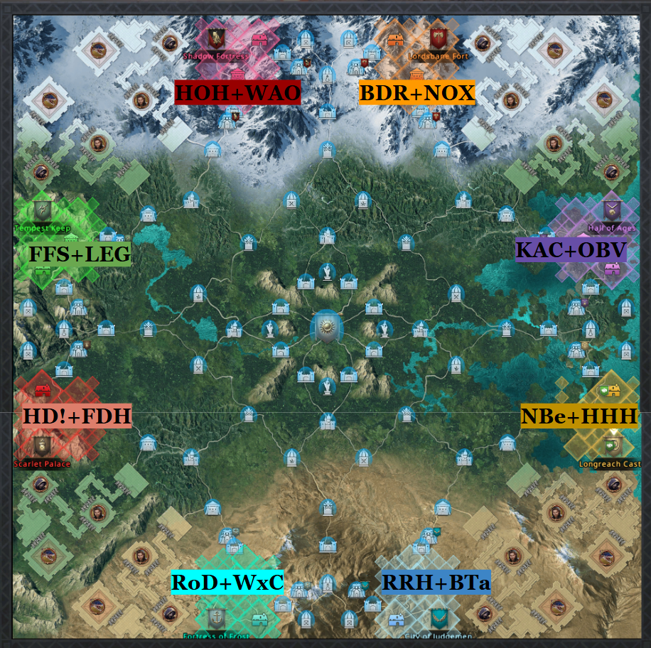 Of course, the map placements didn’t exactly do us any favors. The allocation phase was… generous with the chaos. KAC and OBV landed in Ages, right next to BDR in Lordsbane. We got Longreach - just below them - and got paired with an alliance we didn’t know much about, HHH. An Asian alliance, different timezone, no shared history, and definitely not much activity on Discord. Let’s just say coordination was going to be fun.