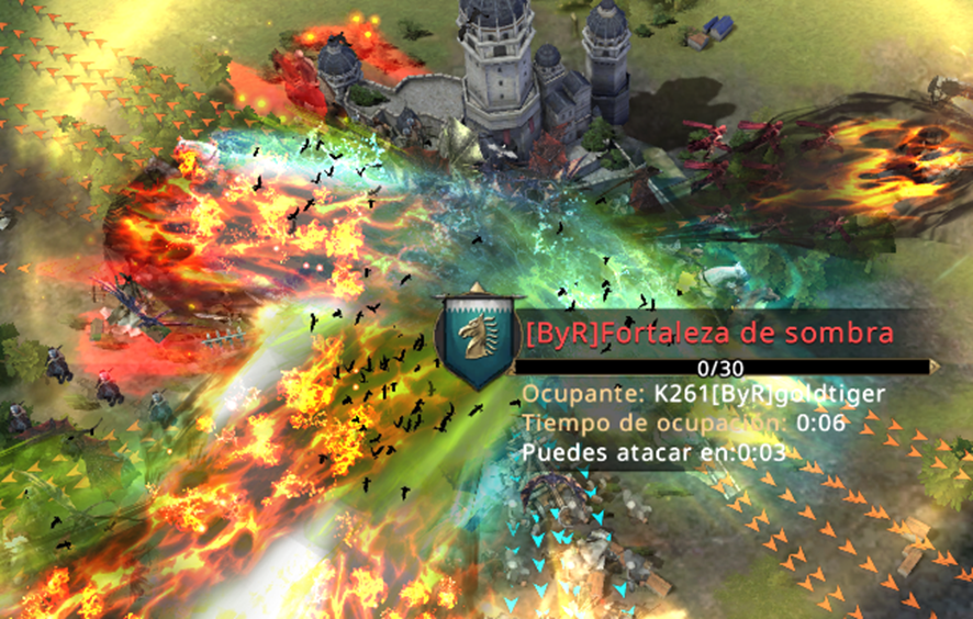 The battle was based on the winner's castle occupation time, and the scoreboards were very even. Countless attacks were being made on the castle.