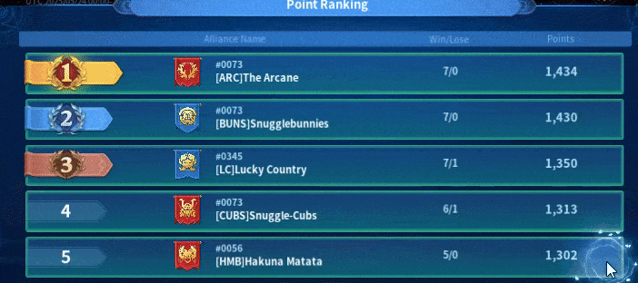 - Server 73’s ARC retained first place after their win against CUBS, resulting in a 7-0 record.