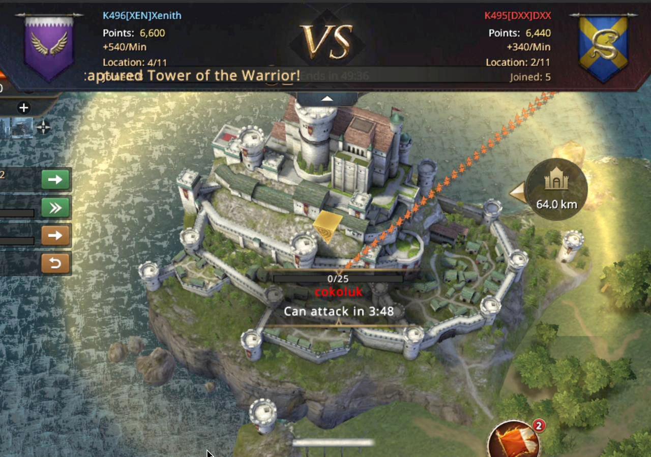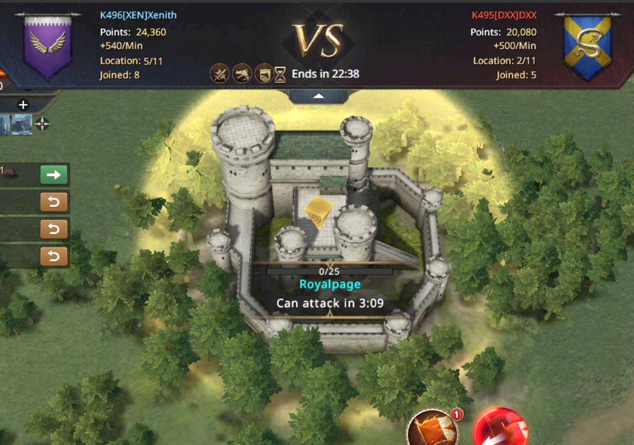 AND THEY DO !!!!!!!!! The XEN players take the mines just before DXX gets there. As the mines are taken, XEN’s leadership opts in for a different plan; They’ll leave Casterly Rock (CR) to DXX and force their strongest player, the one currently holding CR, to be de facto out of the game since he won’t be able to attack any other building. At the same time, the strongholds will occupy DXX’s other troops thanks to the regiments attacking CR, they won’t have a choice but to continuously reinforce it while XEN empties out the mines. As swiftly as they took the mines, the remaining members of XEN fill up the mines to multiply the points per minute coming from them.
