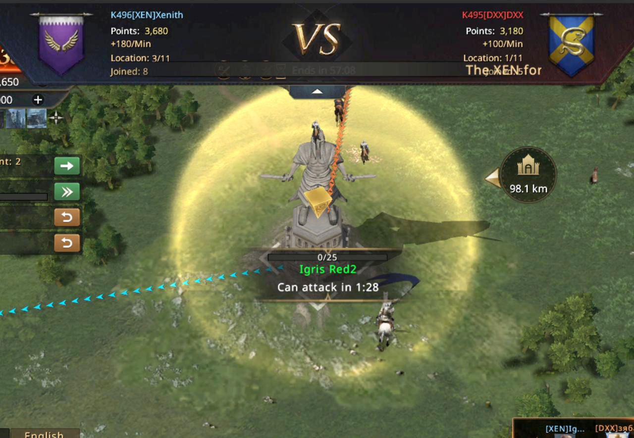 A lone attack from a XEN player allows them to take back the Tower of the Warrior, this attack was only supposed to give information regarding the stats of the DXX players. Info was a must seeing how much they had improved, the match wasn’t going to be as easy as XEN thought. Nonetheless, taking the Tower was a good thing and they were now going to protect it, or at least try to. The report from this battle informed XEN that their opponents now had T4s meaning this was going to be a real problem to deal with.
