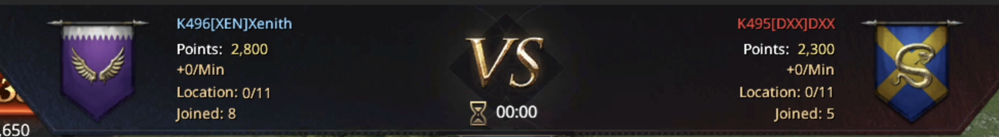 The game is a close call, as the strongholds open up XEN are a little over 11,000 points while DXX are just under that mark, they are almost tied and every point counts. DXX leave the Temple of the Mother this time and at the same time their relentless raids allow them to take back Casterly Rock. The Targaryen stronghold is taken by XEN and the Lannister one is taken by DXX. This is a huge setback for XEN as a big part of their strategy when playing stronger enemies is using the strongholds’ regiments attacks as a stepping stone to get back important buildings like Casterly Rock.