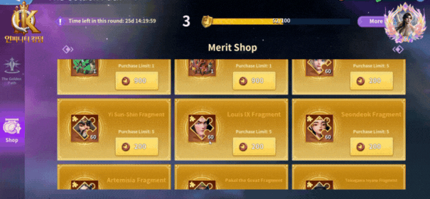- Immortal Fragments (60 each) available for: Mathilda, Trajan, Yi Sun-sin, Margaret I, Louis IX, Seondeok, Artemisia, Pakal, and Tokugawa.