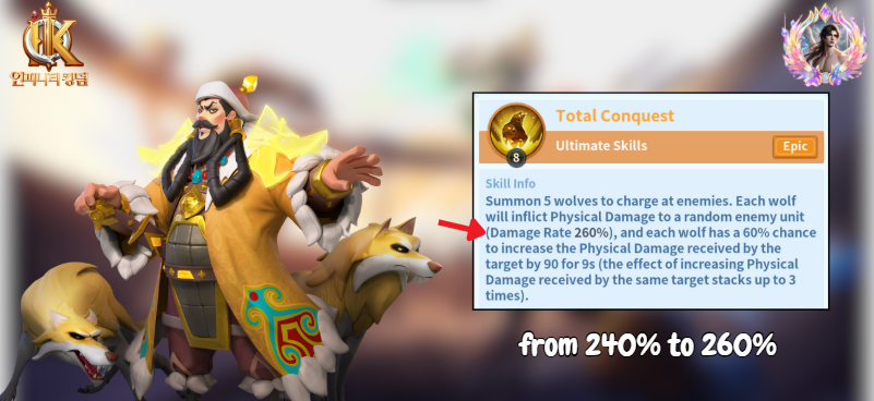 Mael’s opinion: It’s a small increase on paper, but 5 wolves hitting for 20% more adds up fast — that’s over 100% extra physical damage in total. It could make a real difference, especially when paired with Immortals like Nebuchadnezzar II who already boost the enemy’s physical damage taken.
