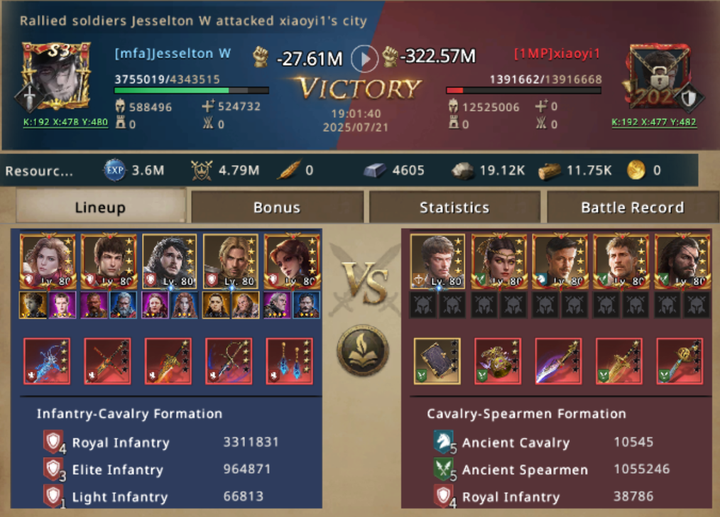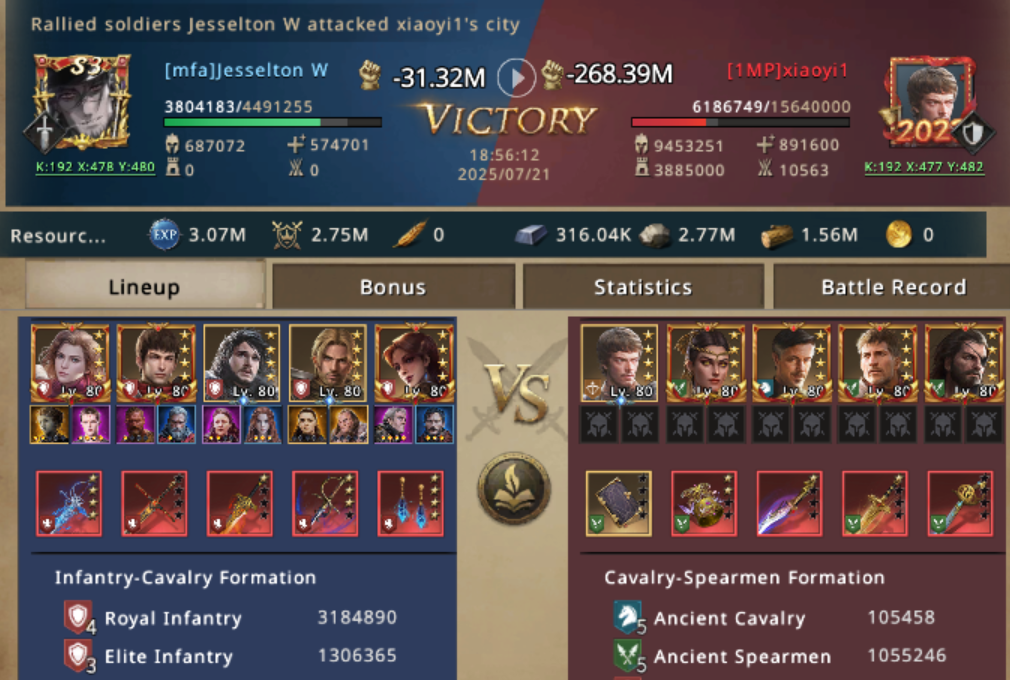 The results are again amazing! Jesselton brought xiaoyi1 to his knees and captured his lord. The damage was big and here is another proof that Jesselton is the new conqueror of the seven kingdoms. The enemy, after this battle, was lighter for another astonishing 320 million power. The soldiers were killed, city was destroyed and the lord was taken prisoner. This marks the end of attack and soldiers returned home. Hunt was over and Jesselton thanked his great friends for all the help. But...