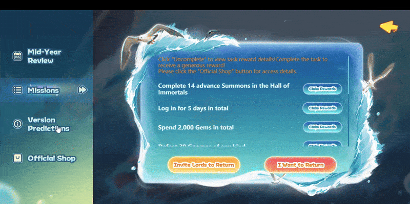 Summer Party is a GT Arcade event that is accessible in the game between August 4 and August 10. There are a couple of layers to this event. Firstly, players can share their invitation codes with returning players who have not logged in before July 4, 2025, and whose castle is over level 15. Returning players will get Light and Shadow Chests, Philosopher’s Stones, Superior Resource Chests, and Building Speedups. Inviters will receive rewards if one, five, or ten players return. They can get Philosopher’s Stones, Stardust, Random Immortal Fragments, Dragon Crystal Selection Chests, and Light and Shadow Selection Chests. All players can like upcoming news, and once it reaches a certain number of likes, all players will receive Theia’s Roulette Tickets as rewards. Additionally, players can claim 200 Gems and an exclusive Typhoon Avatar Frame just by clicking through their Mid-year Review. Furthermore, players can complete in-game tasks for even more rewards like resource chests and AP Potions.