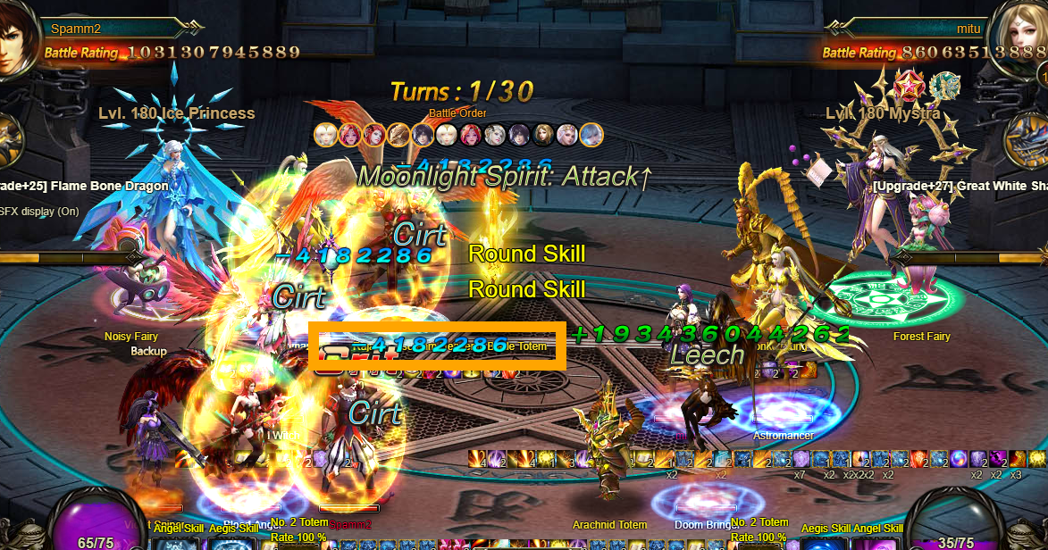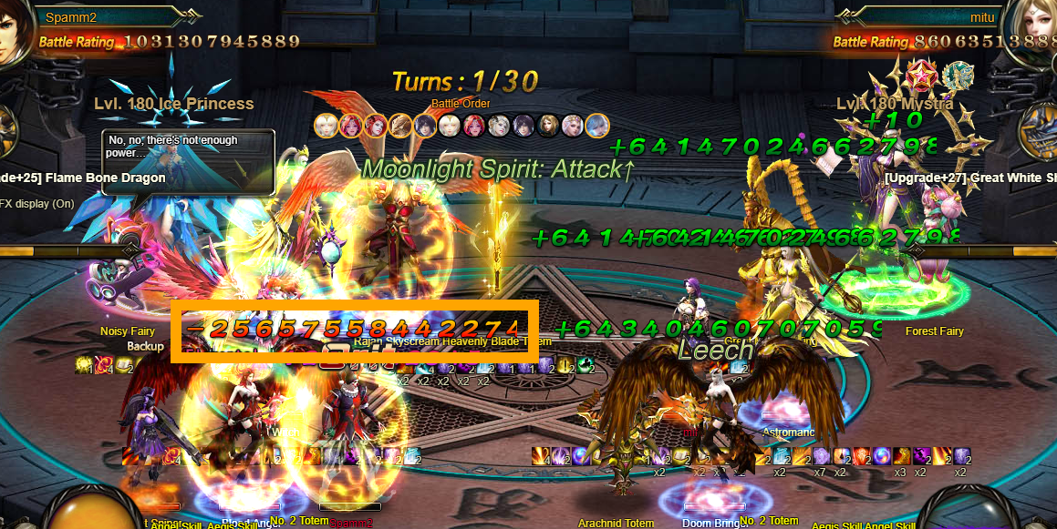In the second screen shot Mitu's DISARMED Blood Angel causes 25657558442274, that is 25.6 TRILLION damage, so ask the devs how that happens from roundskill to full attacks. This happens often in the game, not a rare one off, and yes I know I am wasting my time.