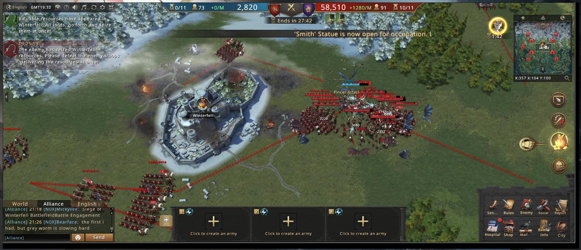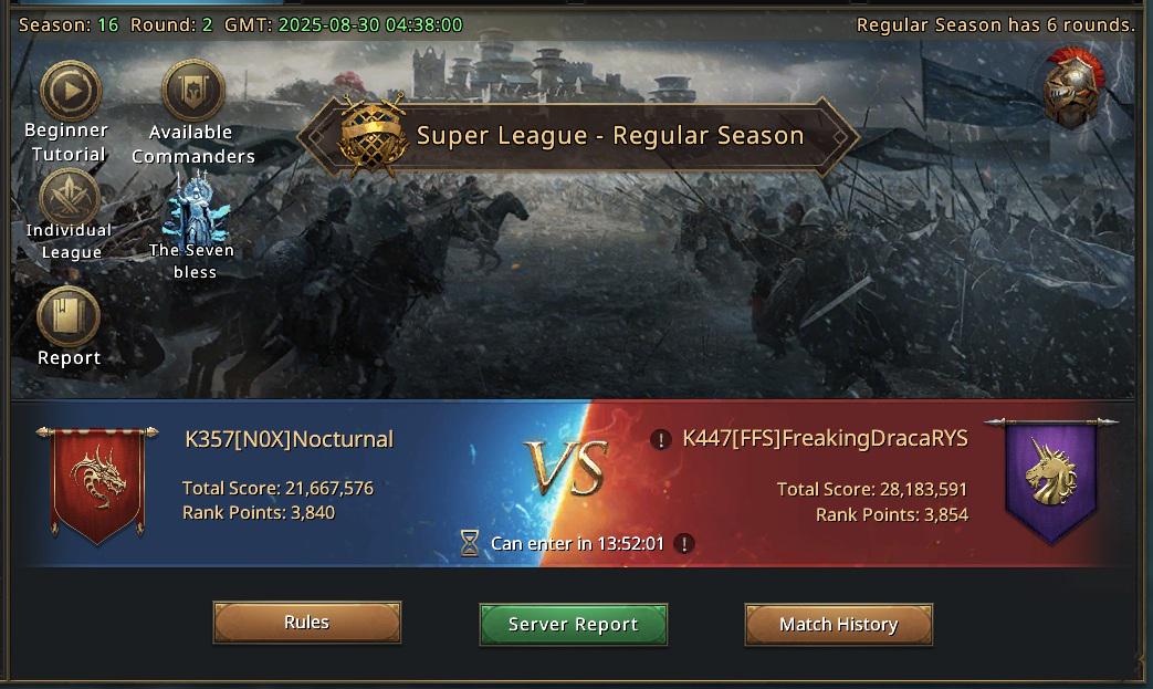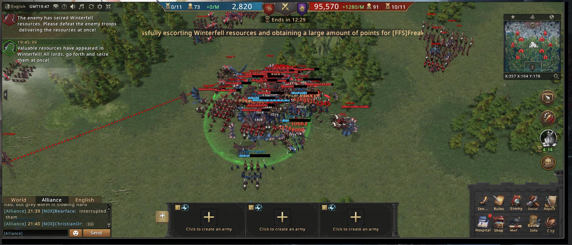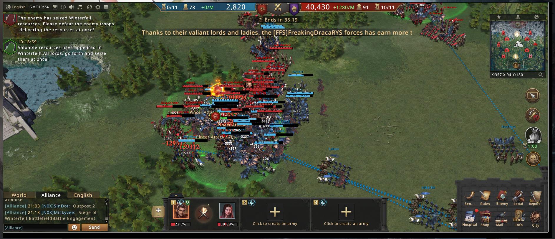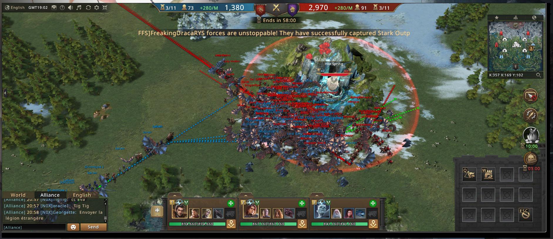 Alas, when the gates finally open and both sides rush for Armory and Hot Springs, reality hits. I glance at the game banner and the numbers glare back: our 73 clearly weaker accounts lined up against their 91 heavy hitters. Even the starting points scream their commitment to SoW compared to ours. This isn’t just a disadvantage; it’s the opening steps of a recipe for disaster. And in no time at all, that recipe is going to bake N0X into a disaster cake.
