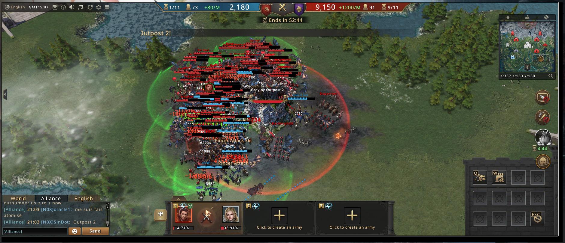 The fight gets ugly fast. Our armies start dropping one after another. We do some damage back, sure, we’re not going down without leaving scars, but the rate of exchange is brutal. We’re clearly not trading in our favor, and it feels less like a fight and more like trying to break an invincible wall.