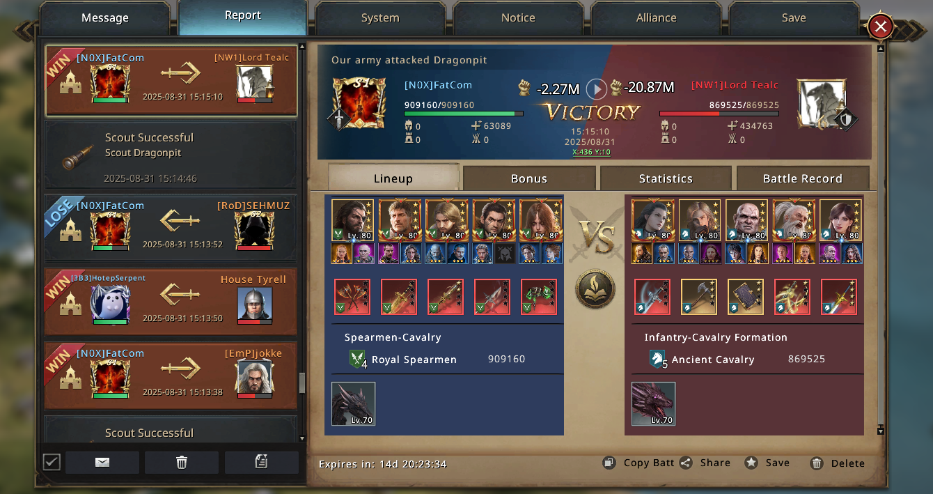 And it pays off. The City falls into our hands. The reports start rolling in, and relief spreads quickly: no scary Spear accounts here, and even the stronger Cav players can’t one shot us out. For the first time all match, we’re not just in the fight, we’re dictating it.