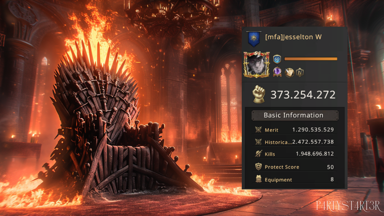 Jesselton wasn't hunting for some time. Kingdoms slowly healed from the destruction he left in his prime. Players slowly but falsely got used to the safety and they started to put their guards down. But Jesselton waited patiently, looking for a target worthy of his return. He already achieved what most of the players could only dream of, almost 1.3 billion merit, with a little over 300 million power, and an army that crushed enemies with unstoppable force. Now, it was time. A target was in sight, and the hunger for merit and kills slowly came back to his mind...