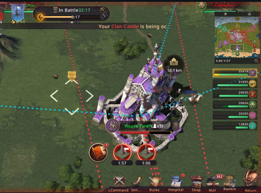 The match was going extraordinarily well. We took the Watchtowers and Catapults. Before we hit the halfway mark of the match, we managed to take the Clan Castle of House Tyrell…With No Real and H I T taking turns holding it for the team.