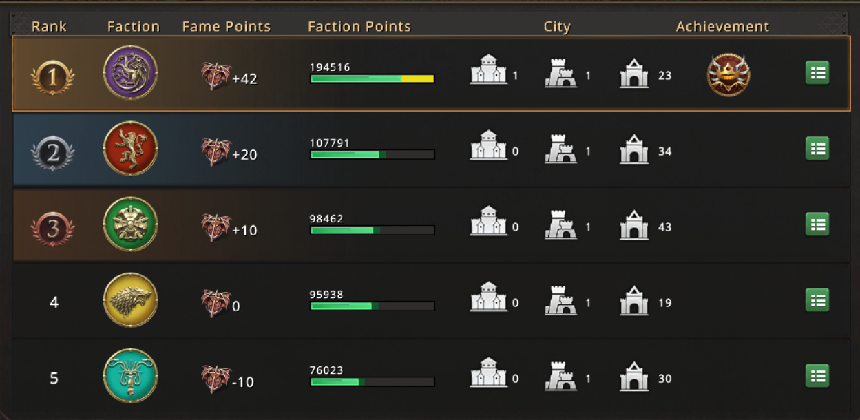 I tried to temper my excitement. City of Glory gives a ton of points so there was still time for us to get knocked from first place. As the city opened, ChAoS swooped in and took it, while we reinforced quickly.