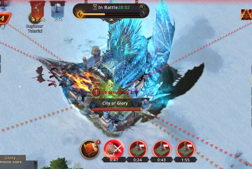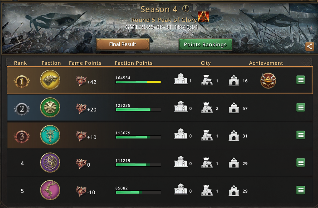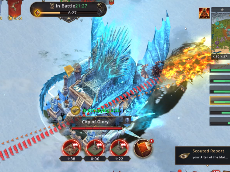 We managed to hold on to the altars we needed by reinforcing. The feeling of dread was rising. We began to drop down to 4th place in the rankings. We had to make a play for the City of Glory but were very unsure if we could hold it. This map was a lot harder then the last one, despite being down, I was impressed with the matchmaking so far. It felt fairer, with each map growing harder gradually. Red had managed to grab the city first. We launched some rallies but were not successful in knocking them out either. Where we had failed others had succeeded with the different houses taking and losing the great city.