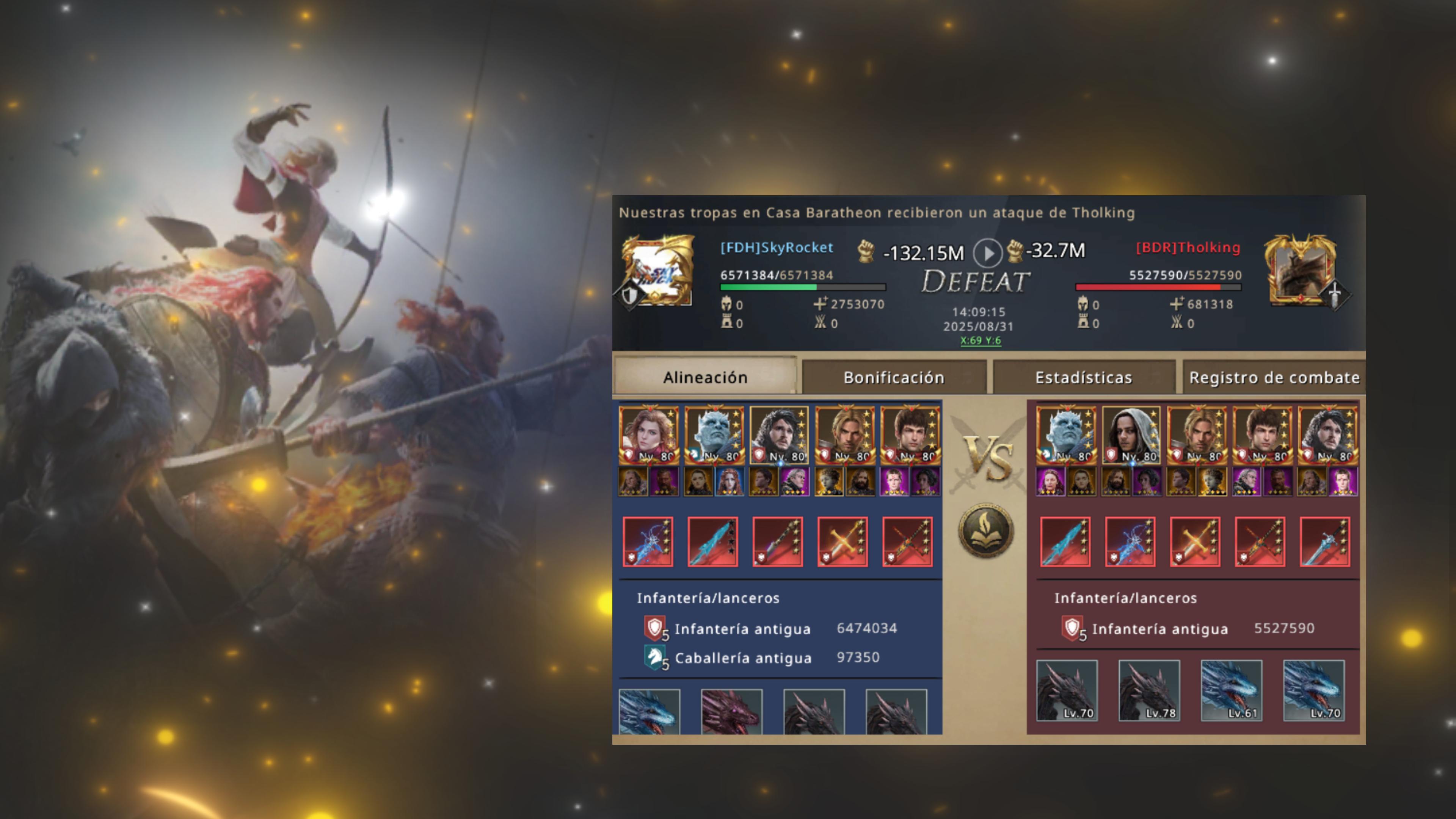 SkyRocket frustrated accepted the defeat and his mistake, since mainly all these last confrontations were for sending a march without a lord, to which before leaving the team he decides to apologize to everyone, for not being able to face the strength of Tholking, added to that, he recognizes that this is not the best time to fight, since he always runs into him as an opponent, we decided to do the same and understand his decision, it was impossible to take out Tholking, his level of superiority was abysmal, and we ended up crushed, literally.