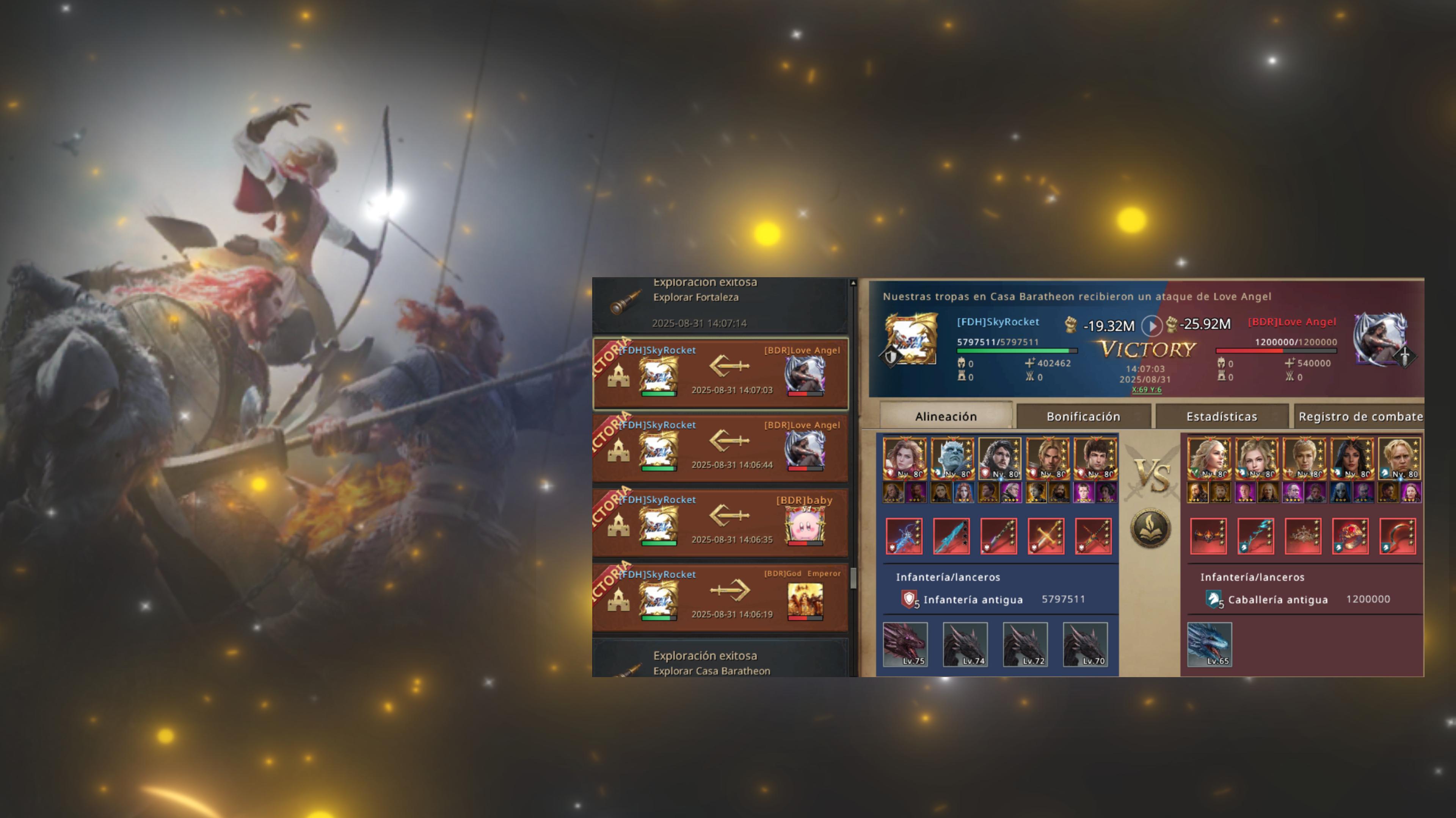 The time to recover our house began SkyRocket decided to go, this time the house was in the hands of God Emperor, we gathered all the infantry to attack and take him out, and quickly went to support him since we need to defend for 2 minutes to declare our house again in possession, BDR alerted, decided to fight us, they sent Love Angel to counter us with cavalry, and baby was the one who wore us down so that the rally takes us with few troops and so they can recover.