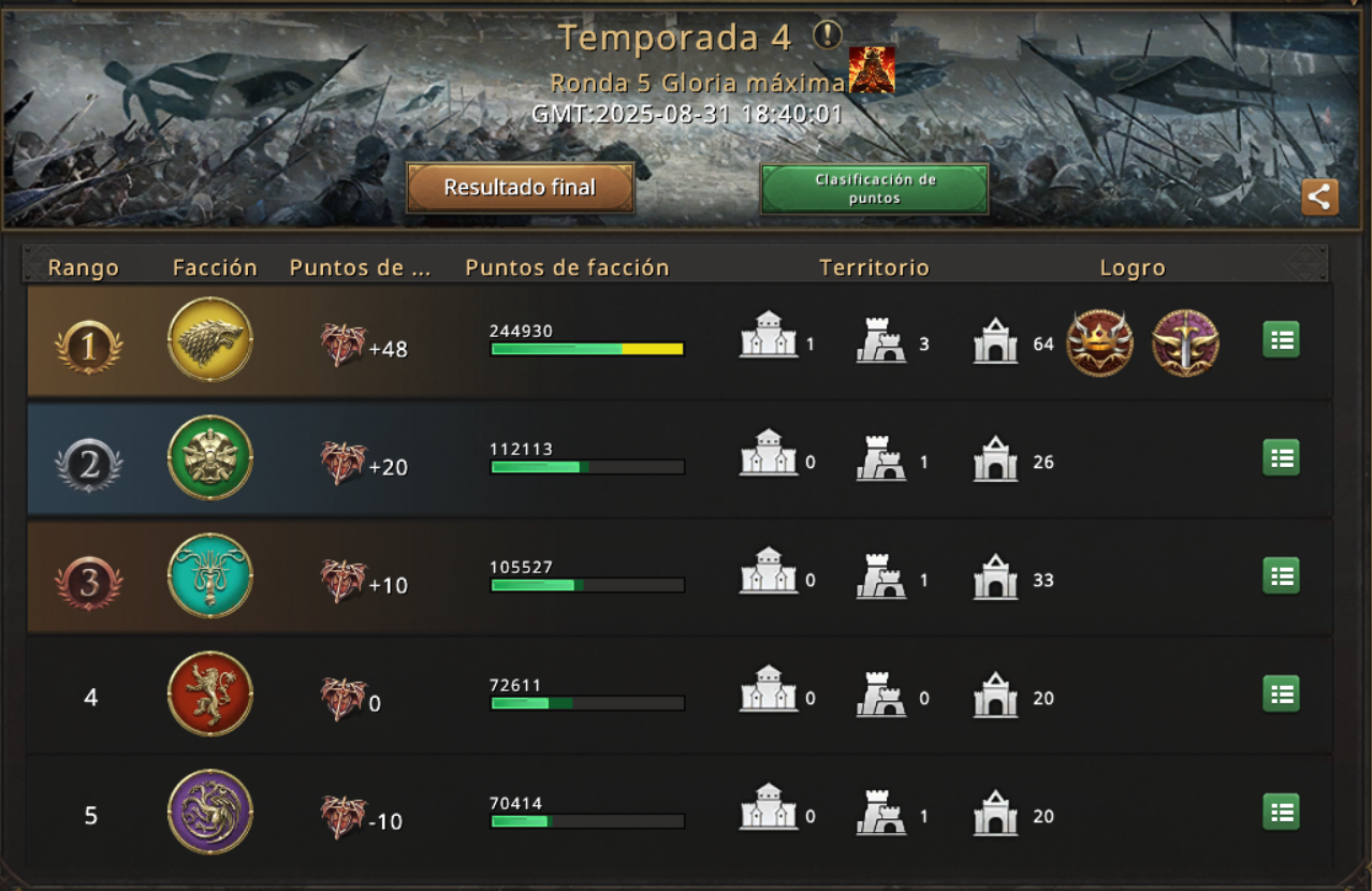 In the second round of Altars the result was different, we tried to defend ourselves from a rally, but the difference between Sinara and Jaqen is abysmal, added to the fact that SkyRocket still needs to improve some weapons, however it was a decent fight, he defended himself, he did not give up, he went for another altar but ... the NPCs of the BDR faction attacked us, defeating Nyl Payne's march, to which baby quickly reacted and fully reinforced the building ... SkyRocket worried, decided to focus on hunting, asking for an army of ancient infantry to be gathered; where despite the fact that we won baby still kept spearmen in the castle, which after 2 minutes of occupation, our house becomes part of House Stark, BDR wanted to leave us without any buildings, each one took one of our constructions, SkyRocket decided to wait ... until it can be retaken to attack together, regardless of the result.