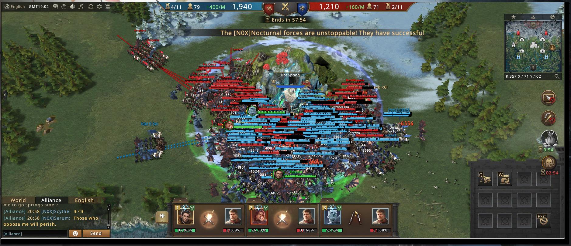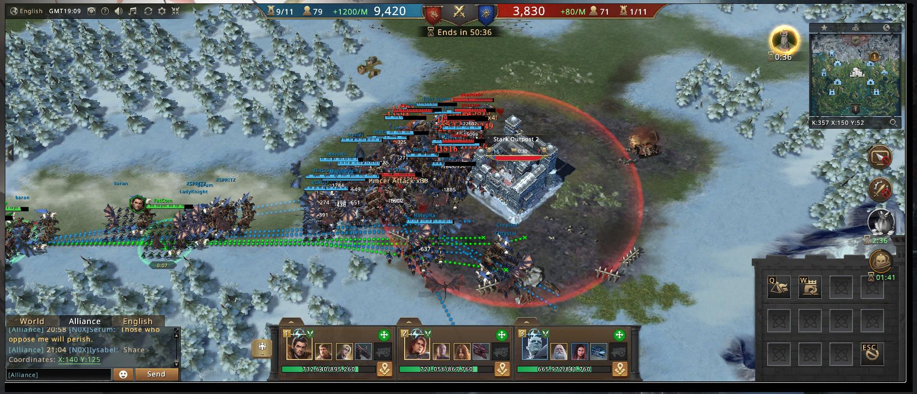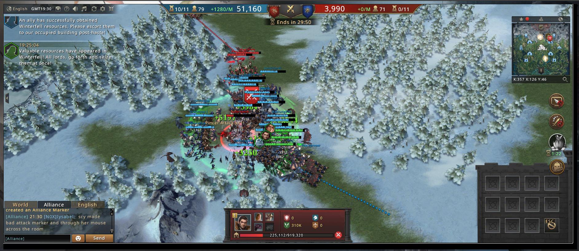 Almost immediately we stack under the objective and begin focusing their armies one by one. I’m confident in our force here, and the numbers quickly prove me right. Within minutes we’re outnumbering them two to one, and as their lines collapse without doing much damage to ours, the ratio only tilts further in our favor.
