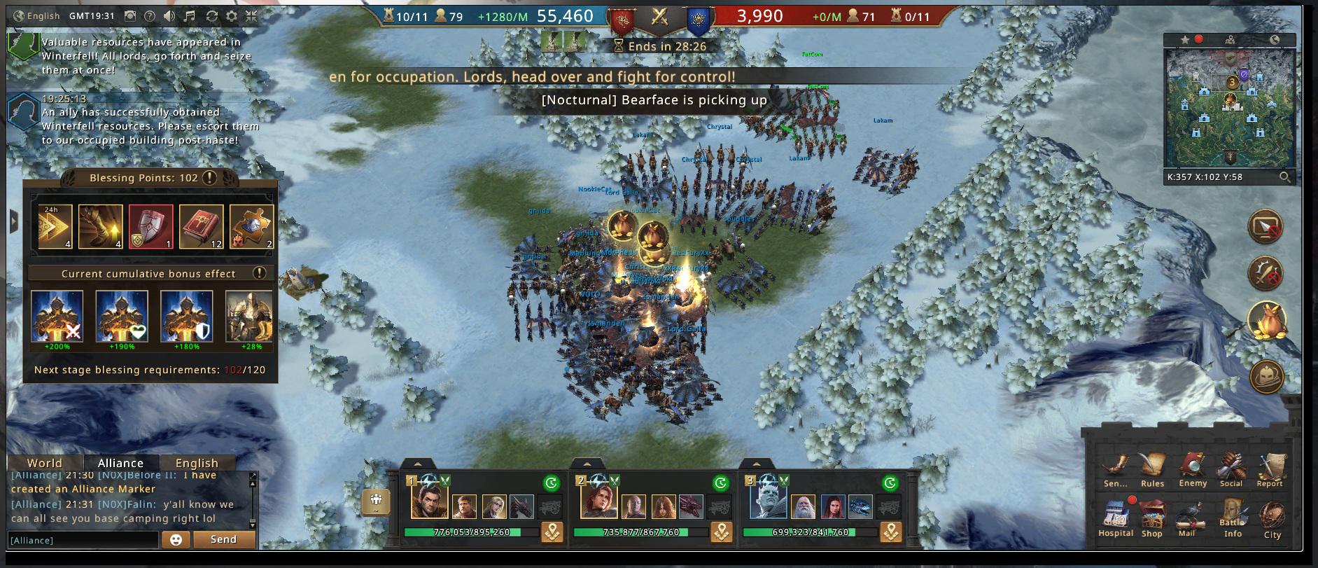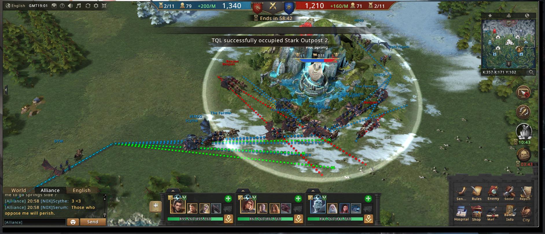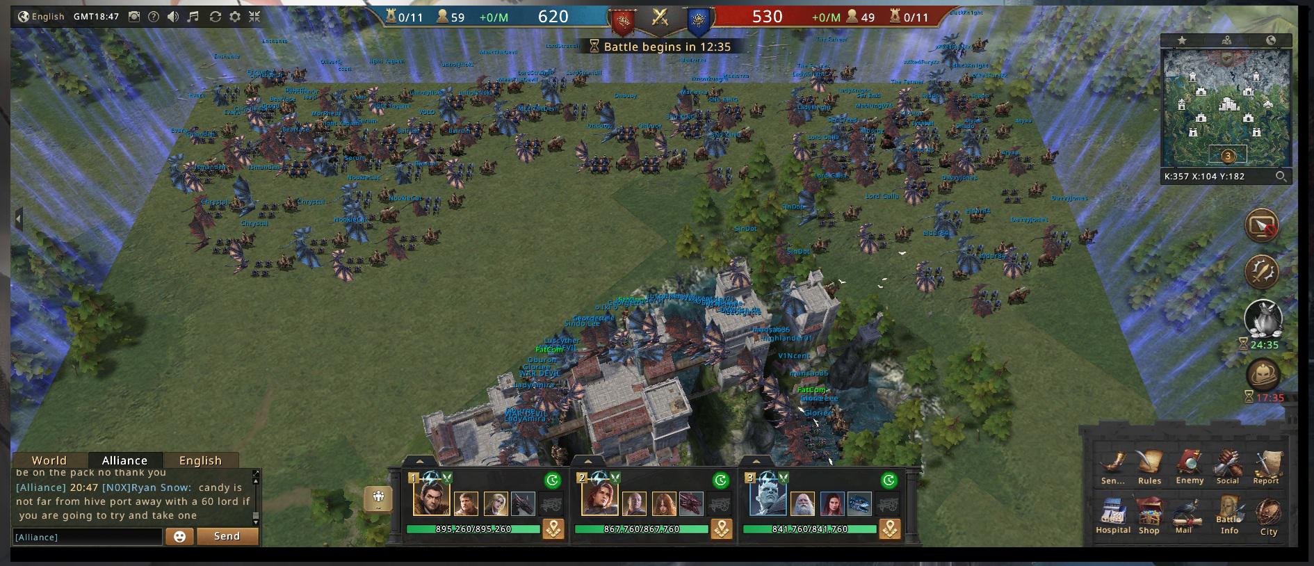 Almost immediately we stack under the objective and begin focusing their armies one by one. I’m confident in our force here, and the numbers quickly prove me right. Within minutes we’re outnumbering them two to one, and as their lines collapse without doing much damage to ours, the ratio only tilts further in our favor.