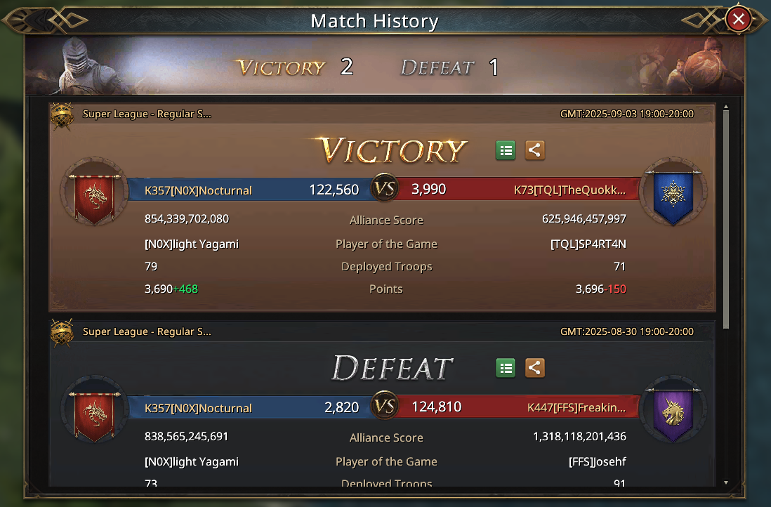 Just before the match starts, I even get a little freebie in alliance chat. Someone probably ran out of Attack Commands and couldn’t quite finish off that last 2%. A nice morale boost for me going into the match.