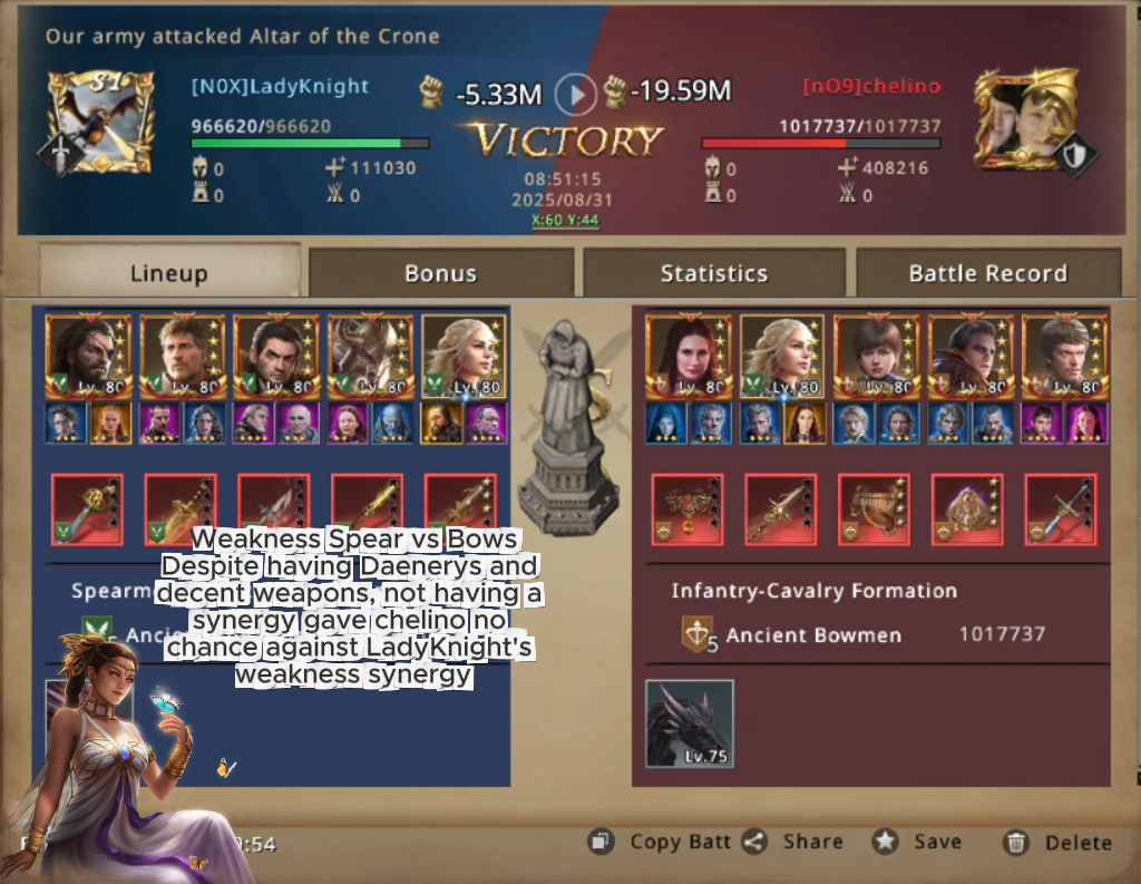 She managed to catch chelino's bows on the wrong foot and her spears kicked them out and managed to take another altar for House Targaryen. As they approached the middle of the fight, the battle for altars had to be put aside for now, as the City of Glory was about to drop the bubble and with so many strong enemies and without catapults, the city will require all their attention if they want to win this round.