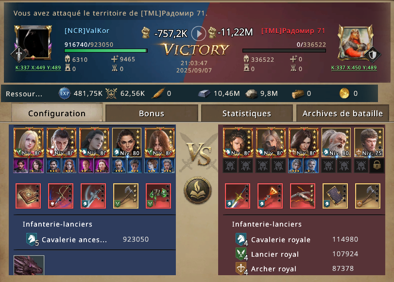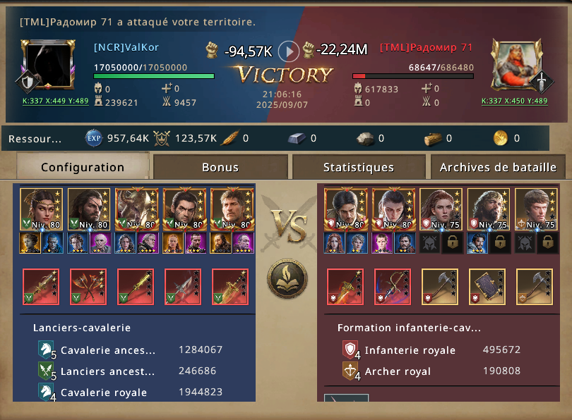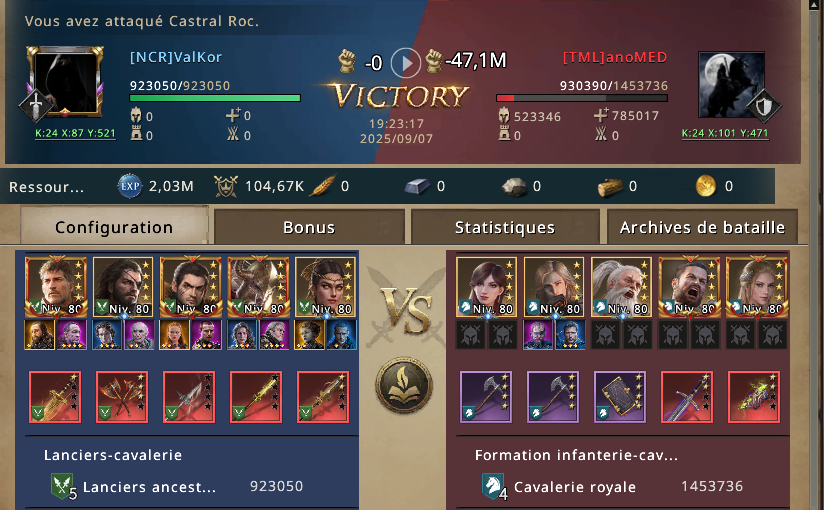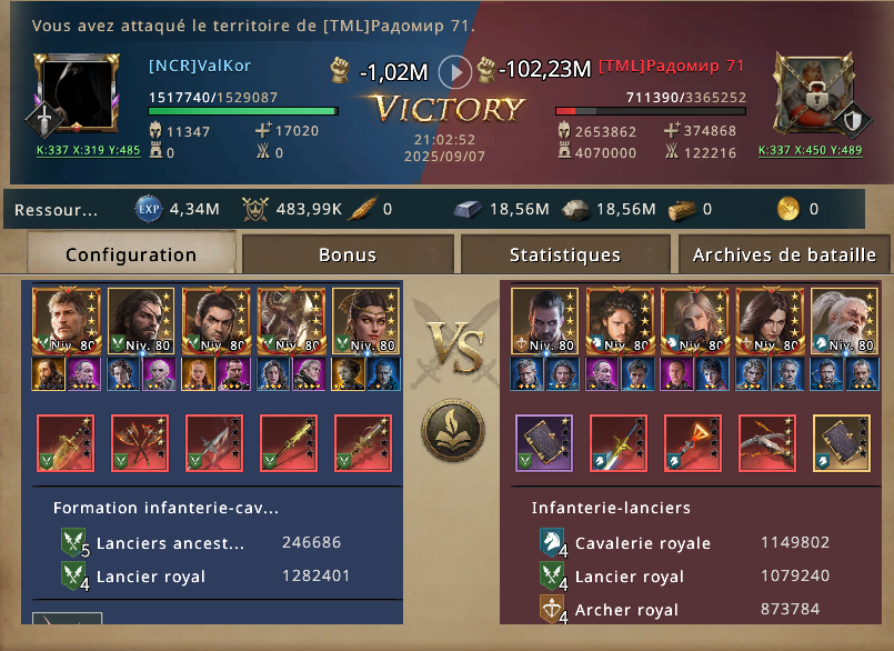 It was the perfect opportunity. ValKor, without hesitation, teleported in turn near Paownp71 and launched a frontal attack. The shock was immense: 1M losses for ValKor against 102M for Paownp71.