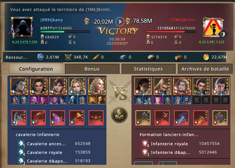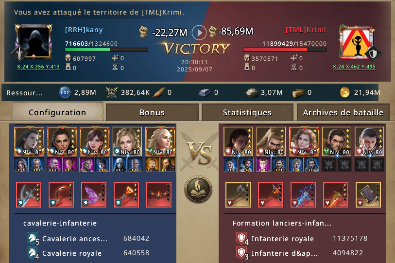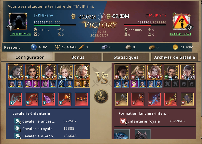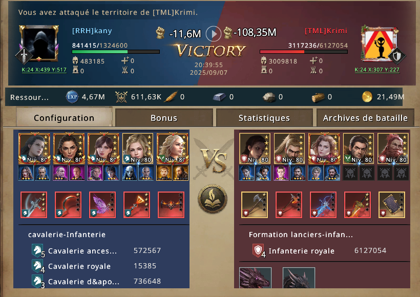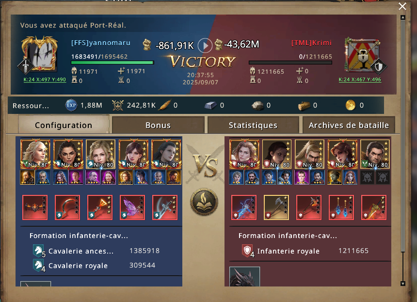 Shortly after, a rumor spread: Krimi had lost his lord to Yannomaru, in the very heart of King’s Landing. For Kany, the opportunity was too good. He launched into a true hunt, chaining attacks despite the fact that he did not have many T4 and T5 troops in reserve.