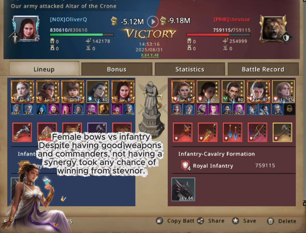 Unfortunately, being attacked with tier 5 troops was too much for OliverQ bows to handle and they got decimated so he had to retreat and leave the altar to House Lannister. Despite having his morale bent, he healed his troops as quickly as possible and started looking for targets to hit again. As more and more altars started opening, the targets of opportunity started appearing on his radar and he went on attacking rampage to try and get as many altars as possible for his team.