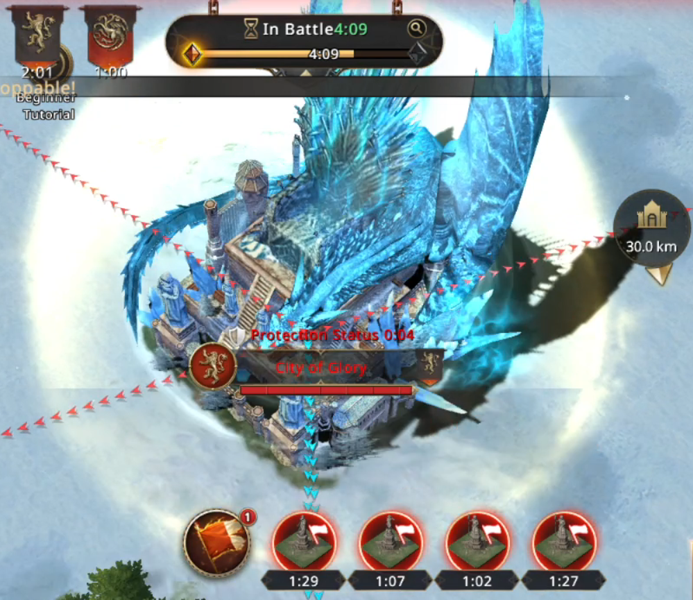 Everyone in the team quickly reinforced and it didn't take long before the rally started marching towards the City of Glory. Once it arrived there, there were rallies from all the houses ready to take the city and they all charged towards the city in quick sequence. falcor1963 led his troops valiantly and after a very bloody battle with lots of fallen troops on both sides, he managed to push House Targaryen's rally out of the city, however before they had any chance to heal their wounded and reinforce, the House Tyrell got attacked by the rallies from other houses and despite them trying to hold their ground, they got kicked from the city as well and a game of i kick him you kick me started. Rallies continued for tens of minutes from all sides, and it was looking like none of the houses will manage to keep the city for the 4 minutes required to fully occupy'it and then with a few minutes left to battle, the house that was doing the worst in the fight, managed to take the city and start the timer. All the other houses were astonished, and it took them a bit to react, but once they did, everyone sent rallies again and try and reset the occupation timer.