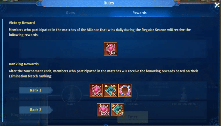 In Alliance Supremacy, rewards are given both daily and at the end of the tournament. Members who participate in daily winning matches earn 1,600 Eternal Insignia. At the conclusion of the event, top-ranking alliances receive additional rewards: 1st place earns 10,000 Eternal Insignia, 60 Corridor of Ghostflame Fragments, and a dynamic King’s Aspect Avatar Frame; 2nd place gets 8,000 Insignia and 45 fragments; 3rd place receives 6,000 Insignia and 30 fragments; and 4th place gets 4,000 Insignia and 15 fragments. Alliances that finish in the top 8 are awarded 2,000 Insignia, while those in the top 16 receive 1,000 Insignia.