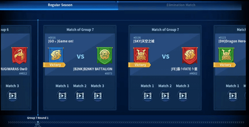 The battles in Alliance Supremacy follow a set daily timeline with three scheduled matches. The first match has a long preparation phase running from UTC 00:00 to 13:00, followed by the battle from UTC 13:01 to 13:30. The second match begins shortly after, with preparation from UTC 13:31 to 14:00 and the battle from UTC 14:01 to 14:30. The third and final match of the day runs preparation from UTC 14:31 to 15:00, with the battle taking place between UTC 15:01 and 15:30. After each battle, results can be viewed for 30 minutes before the next preparation phase begins, and once all three matches are completed, players can review the full outcome. The results include detailed individual battle reports for each lane, allowing alliances to analyze performance, strategy, and improvements for future rounds.