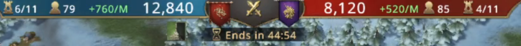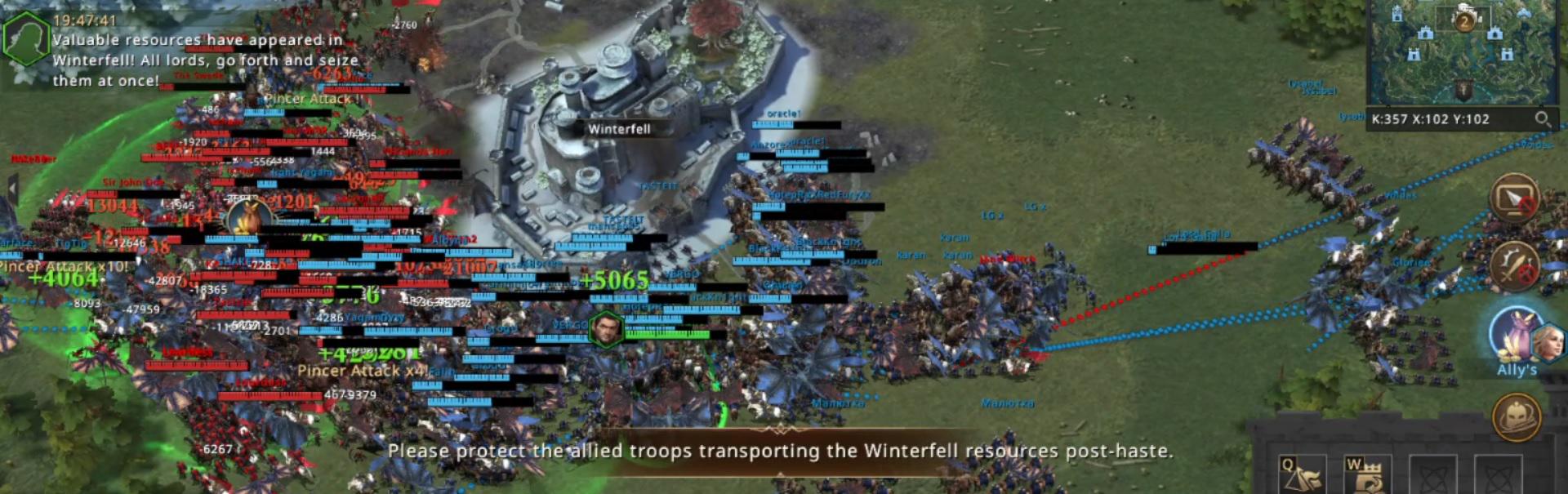 15 minutes into the fight, the teams were neck in neck and [N0X] was needing a miracle at this point in order to qualify but they were fighting like this was the 1st round of the season and not the last one, instantly healing and resending to battle as soon as their troops were dead on the battlefield. Seeing that conquering all the bases looks like an impossible task, they decided to fight for the Winterfell supplies and attract most of [VME] to fight for the supplies and maybe manage to take the bases once most of their forces were at the Winterfell.
