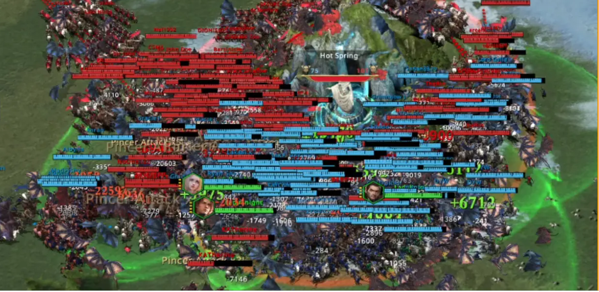 They were fighting bravely, not being bothered by the troops falling on the battlefield as they were being resurrected by the priests at [N0X] base instantly and sent back into the fighting. Barely keeping up with the [VME] forces, [N0X] looked at the sunrise and seen a light and then a very large force of [N0X] warriors descending into springs ready to tip the balance of the fight. Within minutes they managed to slowly but surely starting to push [VME] back towards their stronghold, at a great cost though and then [N0X] leadership had a great call to divert more forces from armory and try to flank [VME] from 2 sides. The plan worked up to a point, and they managed to slaughter a lot of the [VME] forces, but they seemed to be like hydras, you cut one head and 2 spawn instead. It was looking like their forces are growing in numbers and within minutes they managed to overcome the [N0X] forces and push back towards the Hot Springs.