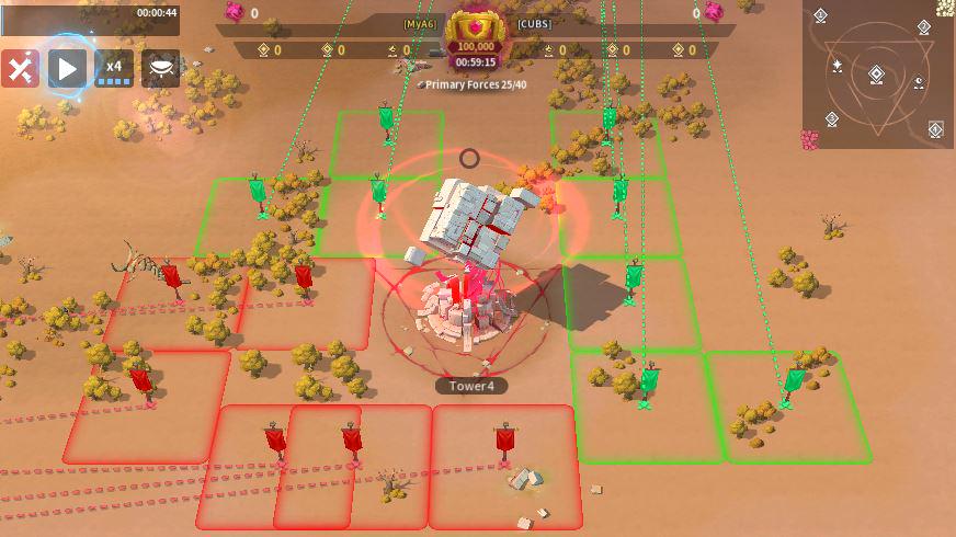 CUBS immediately seized Tower 1 as soon as they landed. They focused on one player and zeroed him before capturing the tower one minute later. After the capture they split their focus onto their two closest targets and bombarded them with coordinated attacks. Outnumbered and under heavy pressure, MyA6 could only defend and failed to mount effective counterattacks, resulting in two more deaths and then the last player falling. Four CUBS began moving to the center as soon as their relocation cooldowns ended.