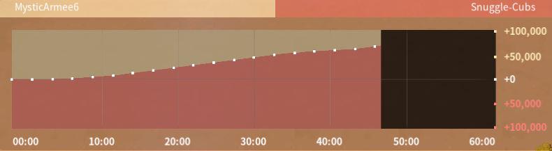 At the ten minute mark one MyA6 player relocated into CUBS' home tower but his relocation was destroyed by the lone guard. Seconds later another MyA6 player teleported in but he should have done so earlier to save the relocation. A minute after that a third teleport arrived and three more players began advancing toward Tower 3. CUBS blocked one invasion with their own teleport yet another four MyA6 players still started relocations. The two home guards zeroed an invader and held their ground despite MyA6 having superior numbers. CUBS then funneled in multiple players from Tower 1 and those who had died elsewhere relocated back to reinforce the defense. Home towers are extremely difficult to capture and hold because they sit so close to the enemy spawn and MyA6 fumbled the play by failing to secure the objective when they initially had the advantage. As more defenders poured in MyA6 lost their window. They managed a prolonged hold with a four player formation but could never steal the tower. Eventually the invasion was quelled. With so many players committed to that attack MyA6 lacked the manpower to contest other objectives they needed and during that period CUBS built a forty seven thousand point lead with thirty minutes remaining creating an insurmountable gap.