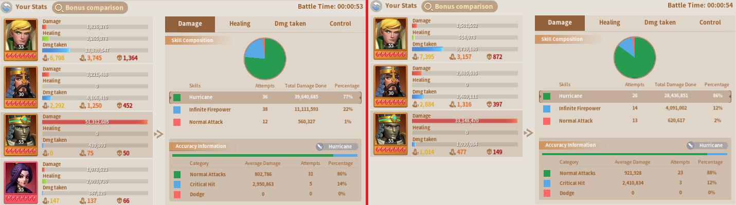 In battles without Nine Tails, Baldwin’s Hurricane skill triggered an average of 26 times. However, when Nine Tails was added to the lineup, that number rose to an average of 36 triggers, even though the matches ended slightly faster due to increased damage output. That represents an approximate 38% increase in procs purely from the 10% passive trigger boost granted by Phantom Pact. This shows that Nine Tails doesn’t just provide healing and cleanse utility—her passive also significantly enhances the performance of luck-based Immortals like Baldwin or Loki, whose ultimates depend on low trigger probabilities.