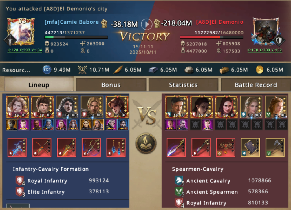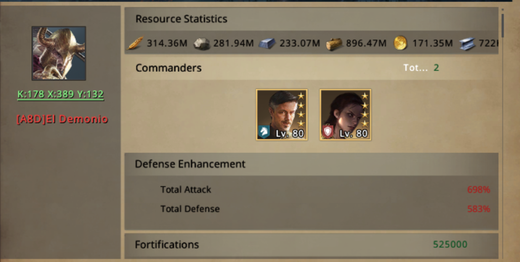 Camie, searching around for a kingdom to raid, received word that in kingdom 178, the lord El Demonio, one of A8D leadership members, was without a bubble, had an active fervour (The desire for war, preventing the lord from using truce to bubble their city) and a lord captured for a small army power bonus. Observing the lord for a bit, with heavy spearmen gear and Hector as their lord, it was safe to assume they were a spearmen front line focused lord, a prime target for Camie, but without a scout and given the size of their account it would be risky to jump in and instantly send in their army, Camie had to wait for El Demonio to initiate another rally against the Nightking and have their armies march out, expecting that their lord will also join the expedition.