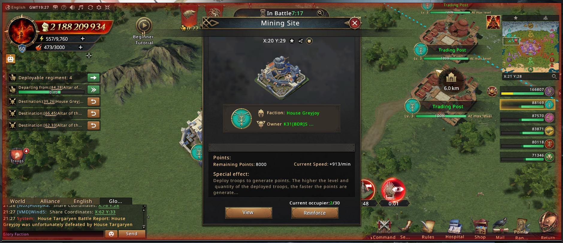 As the small mines open, our rally leads react instantly. One by one, we capture three, then four mines in quick succession. With minimal reinforcements, we manage to hold them all. And the cherry on top: after depleting one of our own, we snipe a nearly full mine from the house next to us.