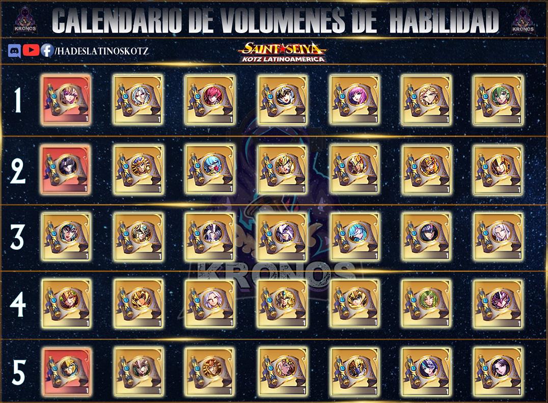 Ahora si entrando en materia, aquí esta la rotación completa de tomos de Caballeros que podemos comprar en Campo de Honor. Actualmente estamos en las 5ta rotación y si los cálculos no me fallan terminaremos el año con la 4ta rotación.
