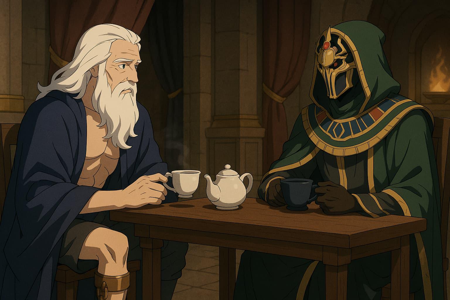 Beneath the desert, Merlin sat bound yet unharmed, listening to the Scarab King's questions shift from accusation to confession. The man's mask might hide a spy's heart, but trembled with something deeper — fear, maybe faith. The ley lines shivered; Zephyr's pulse could now be felt in both worlds. The dragons were stirring, and the Treaty that had once bound gods and men alike was beginning to remember its price.