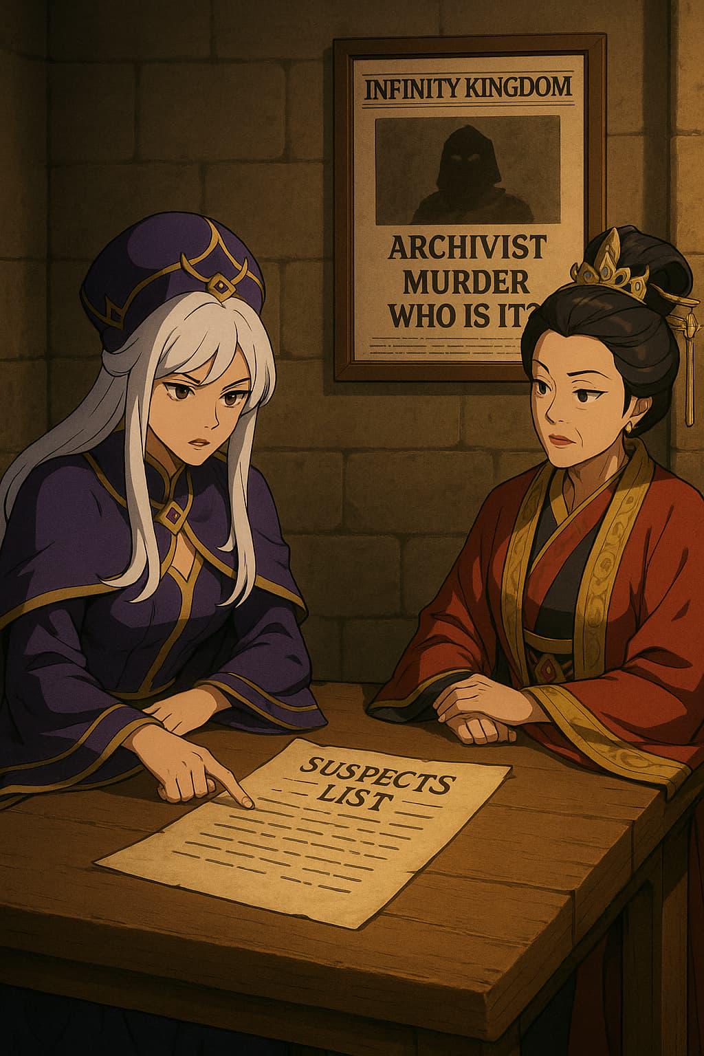 Empress Wu raised her hand. "Enough. The night's chaos has birthed more shadows than answers. Himiko and I have compiled four names —" she paused, eyes drifting over the room, "— but the air smells of a fifth."