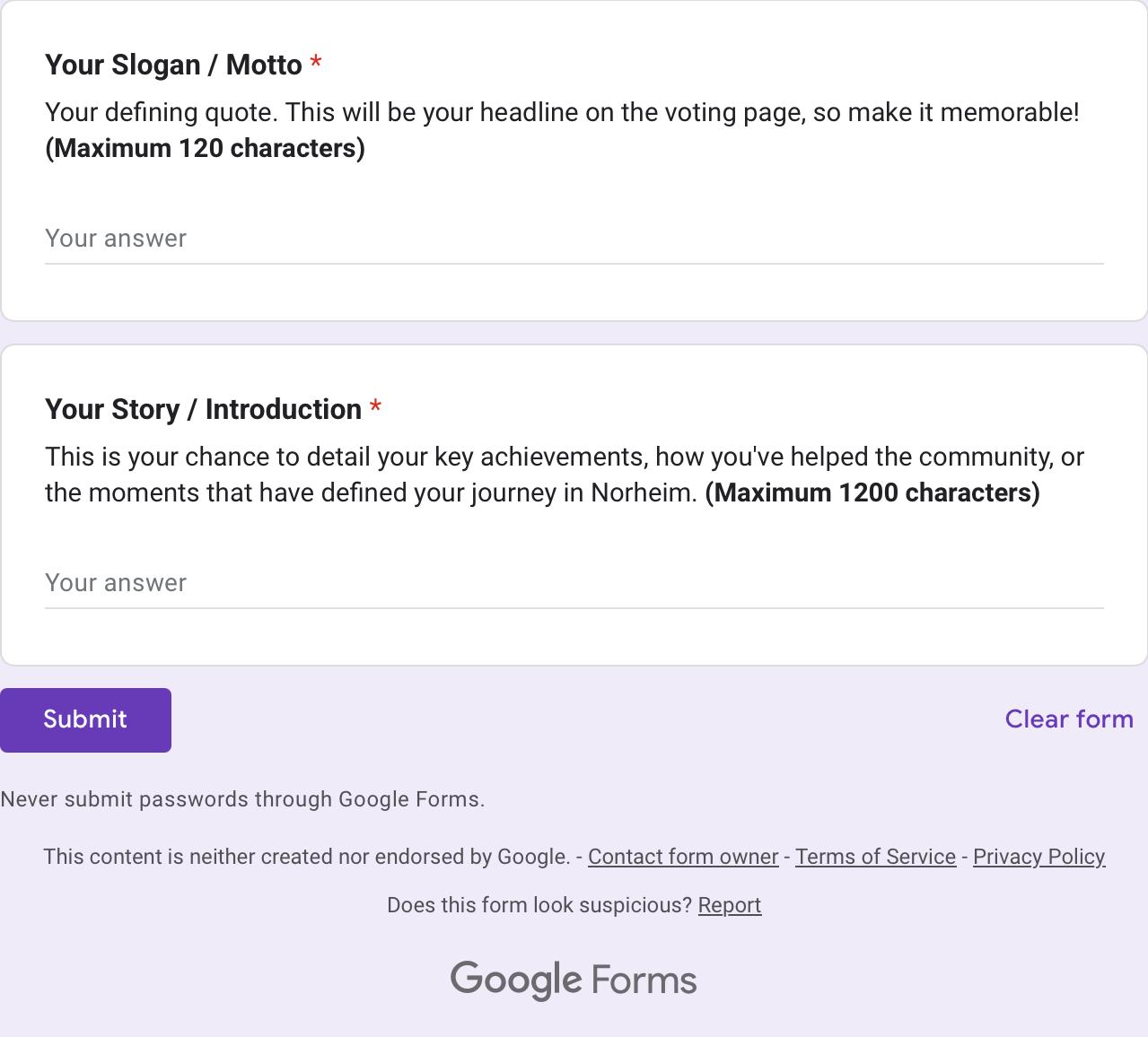 - Show Their Impact: How have they made Norheim better? Maybe they organise rallies, train newbies, or boost morale.